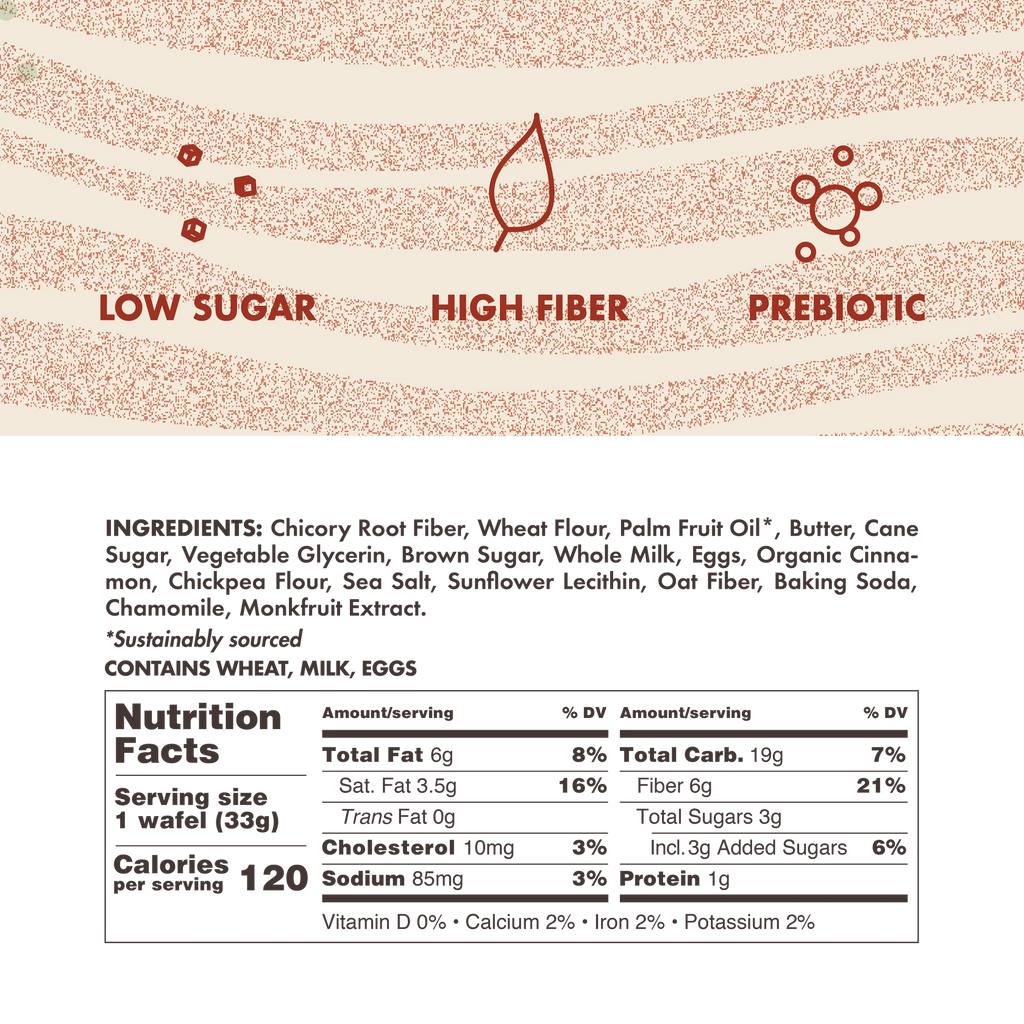 SugarA wintertime favorite! 3 grams of sugar, a hint of spice, and everything nice. The inspiration behind Rip Van Wafel was to bring Americans a unique, guiltless and indulgent snack. The third iteration of the reinvented dutch stroopwafel has just 3 grams of sugar. That's 88% less than America's most popular candy bar with 58% less net carbs and 6X the fiber. Now go and indulge without the guilt!
