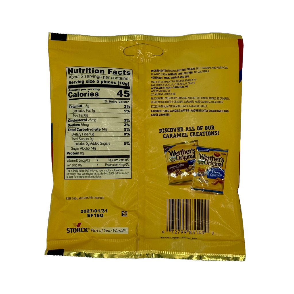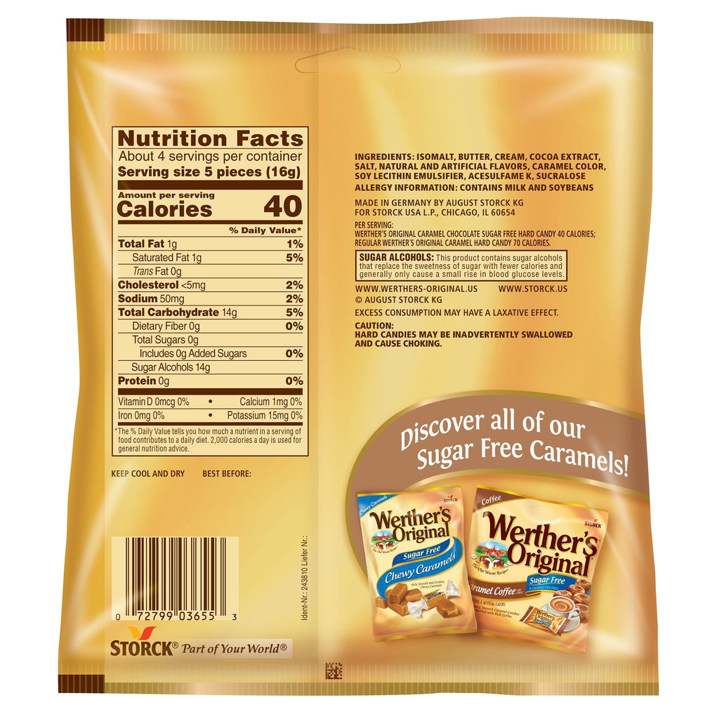 SugarWerther's Sugar Free Hard Candies are a sugar free, low carb, guilt-free way to indulge in that comforting caramel you know and love. Werther's Sugar Free Hard Candies are so rich, smooth and creamy you'll never know it's sugar free.