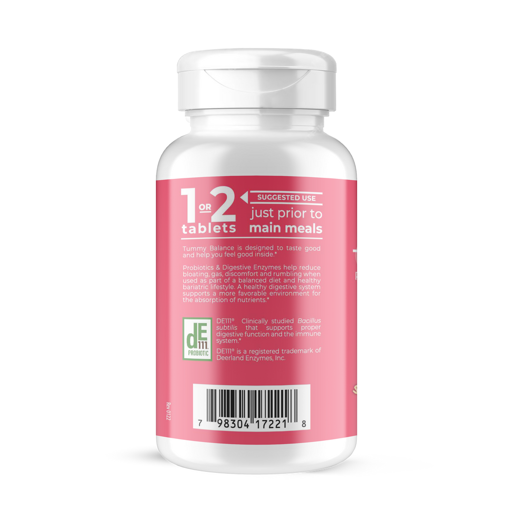Unspoken side effects of bariatric surgery include embarrassing stomach noises, excessive foul gas, constipation, and nutrient deficiencies. Tummy Balance Probiotics & Digestive Enzymes help post-ops regain digestive balance and flow to the gastrointestinal food process.