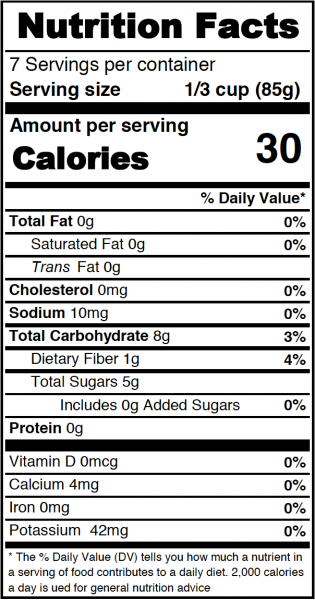 Apple Ingredients: Apples, Water, Food Starch-Modified (Corn), Sucralose (a Non-Nutritive Sweetener), and Spices (Cinnamon and Nutmeg).