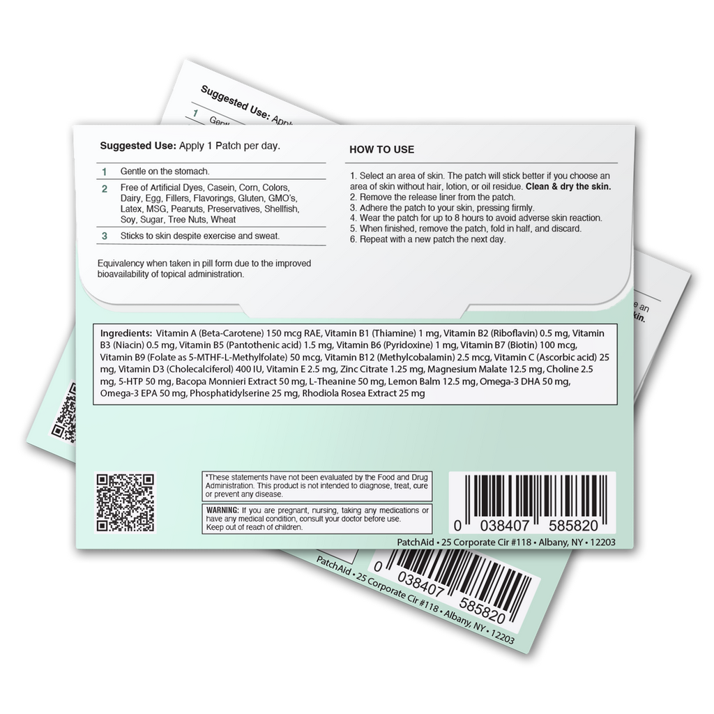 Please Note: Nutritional patches are a new technology. As with any nutritional supplements, consumers should use nutrition patches according to their healthcare providers' recommendations and regularly monitor nutrient levels through lab work as they would when taking any dietary supplements.