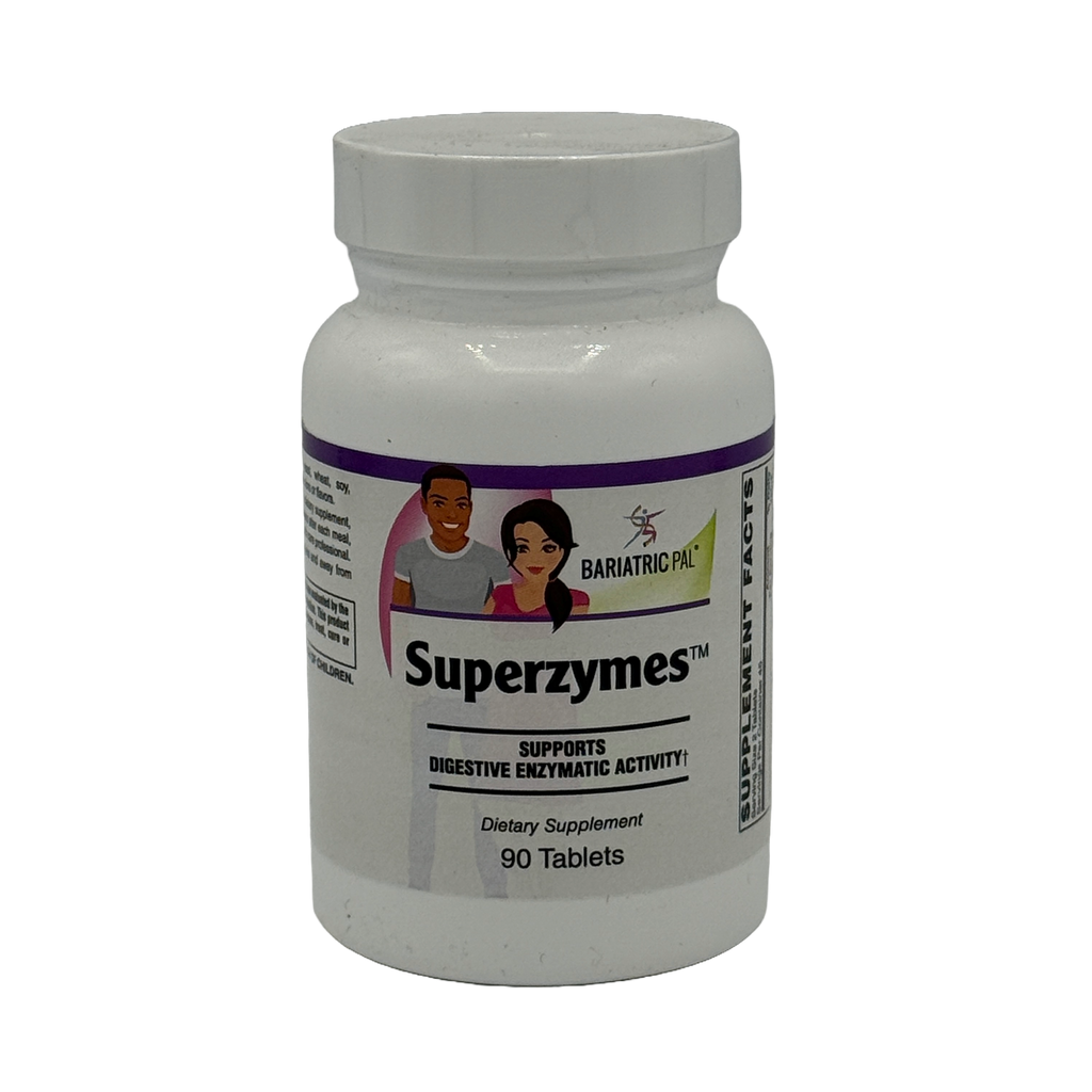 BariatricPal Superzymes Digestive Aid Tablets is a multi-enzyme formula containing both animal and plant-derived enzymes, designed to support normal, healthy digestion of fats, proteins, and carbohydrates.