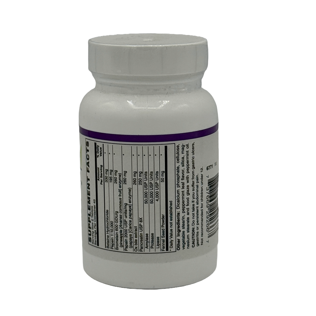 - Provides pepsin, bromelain, and papain to help support protein digestion.