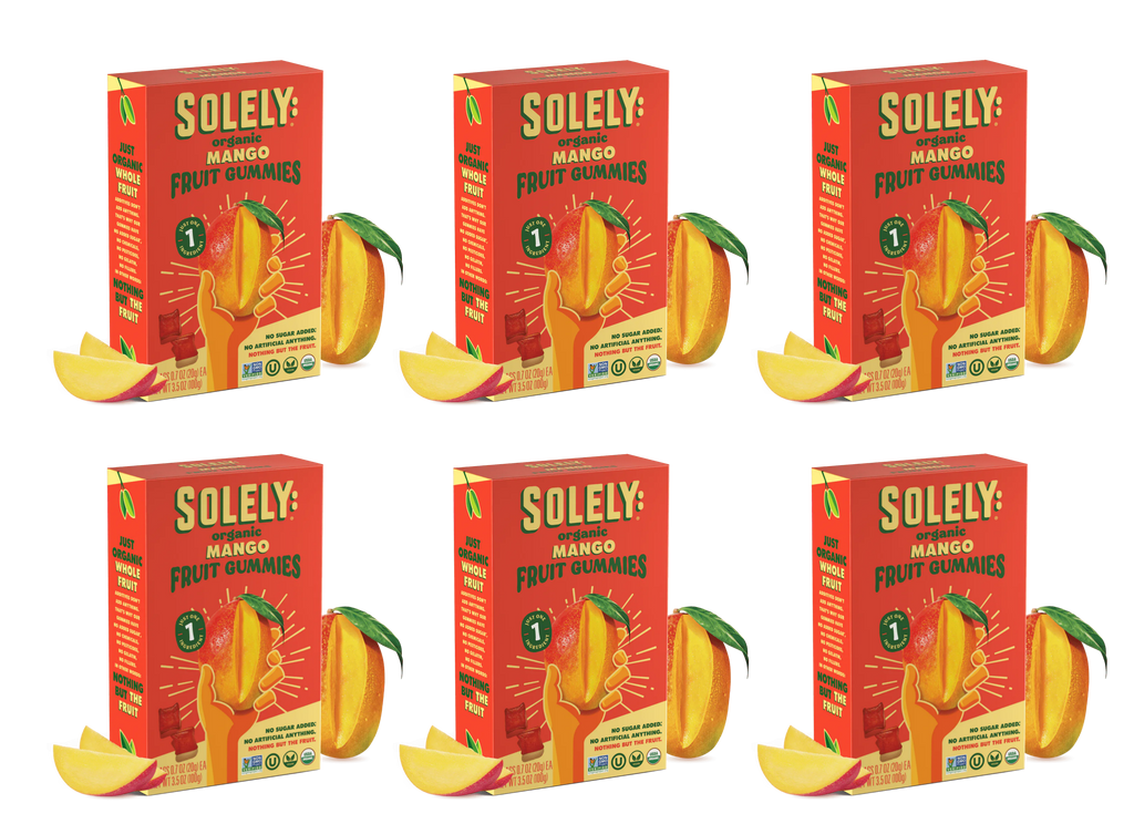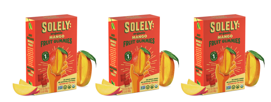 Solely Whole Fruit Mango Gummies are made with nothing but whole organic mangoes, picked fresh on Solely certified farms, and then crafted into tasty little cubes.