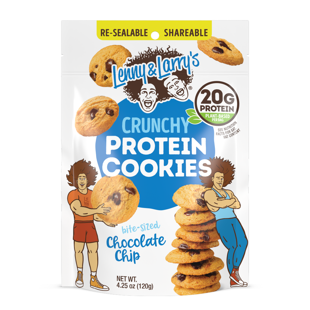 Lenny & Larry's The Complete Crunchy Cookies are a high protein, high fiber cookie with no artificial sweeteners or sugar alcohols. These bite-sized cookies come in a resealable pouch to keep them fresh. Every crunchy bite is filled with rich taste and plant-based protein. Lenny & Larry's The Complete Crunchy Cookies are vegan, kosher, and non-GMO verified.