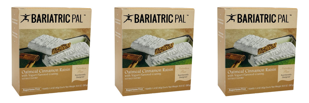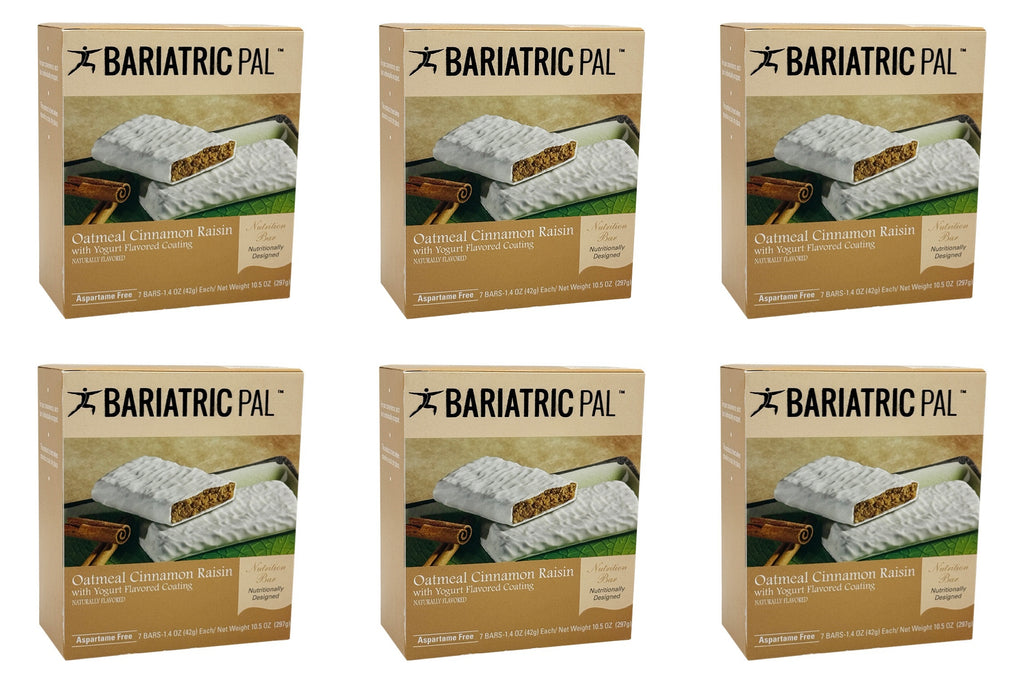 SugarBariatricPal Oatmeal Cinnamon Raisin Bar with Yogurt Coating has a chewy, dense center like a homemade oatmeal raisin cookie. It’s covered with a sweet and creamy yogurt coating. The bar is made with real ingredients like oats, raisins, cinnamon, non-fat yogurt, and honey. It tastes like a genuine oatmeal raisin cookie, but doesn’t have the calories and fat or the guilt. It’s perfect for a morning or afternoon snack, or even a light on-the-go breakfast.