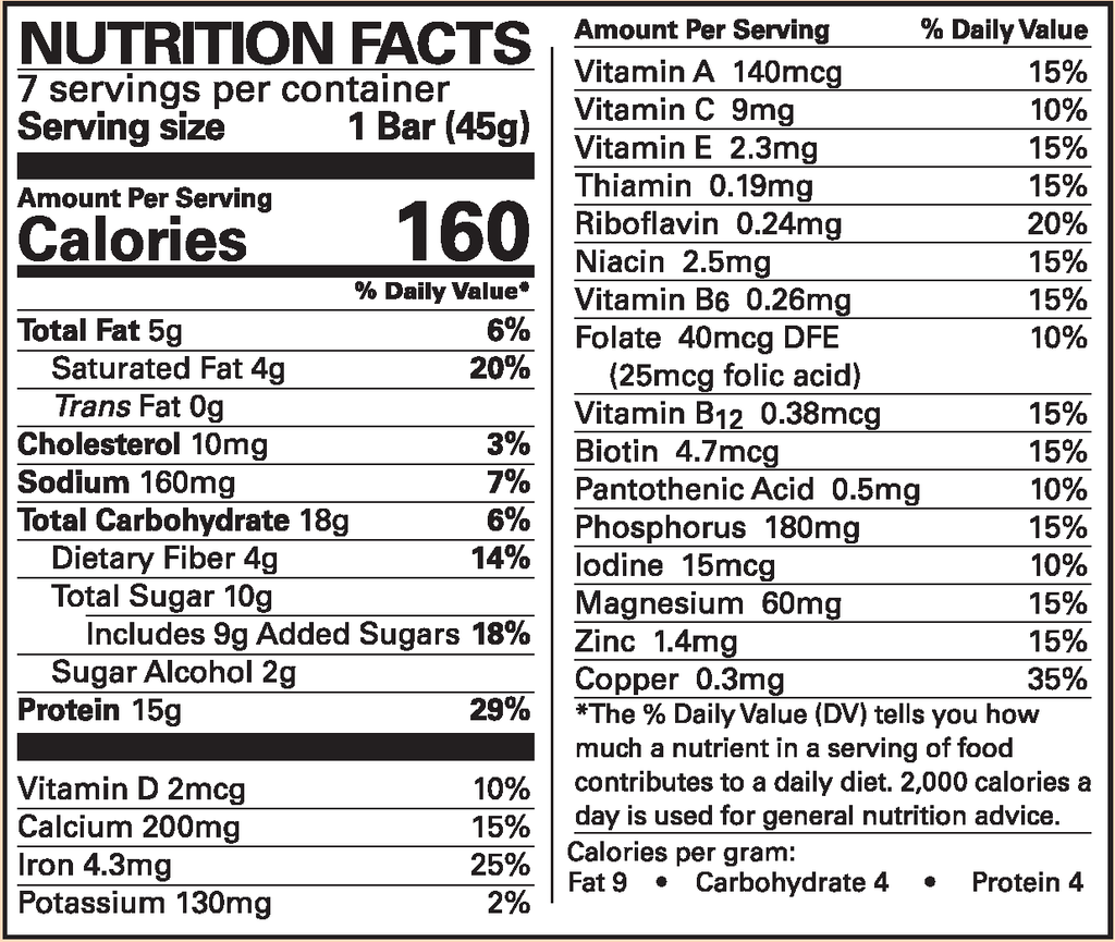 Use these bars as a satisfying snack or even a quick meal replacement for breakfast or lunch. You can’t go wrong with 15 grams of protein and 160 calories, plus vitamins, minerals, and 5 grams of filling dietary fiber.