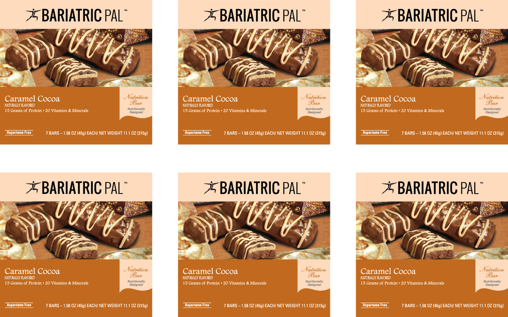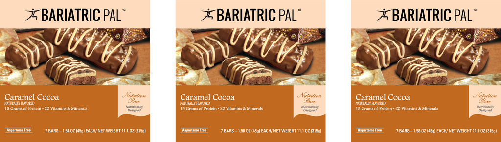 SugarWhen your sweet tooth calls, answer it with BariatricPal 15 Gram Protein Bars Caramel Cocoa. This high-protein healthy bar has a chocolate cookie with soy protein nuggets and a creamy caramel filling.