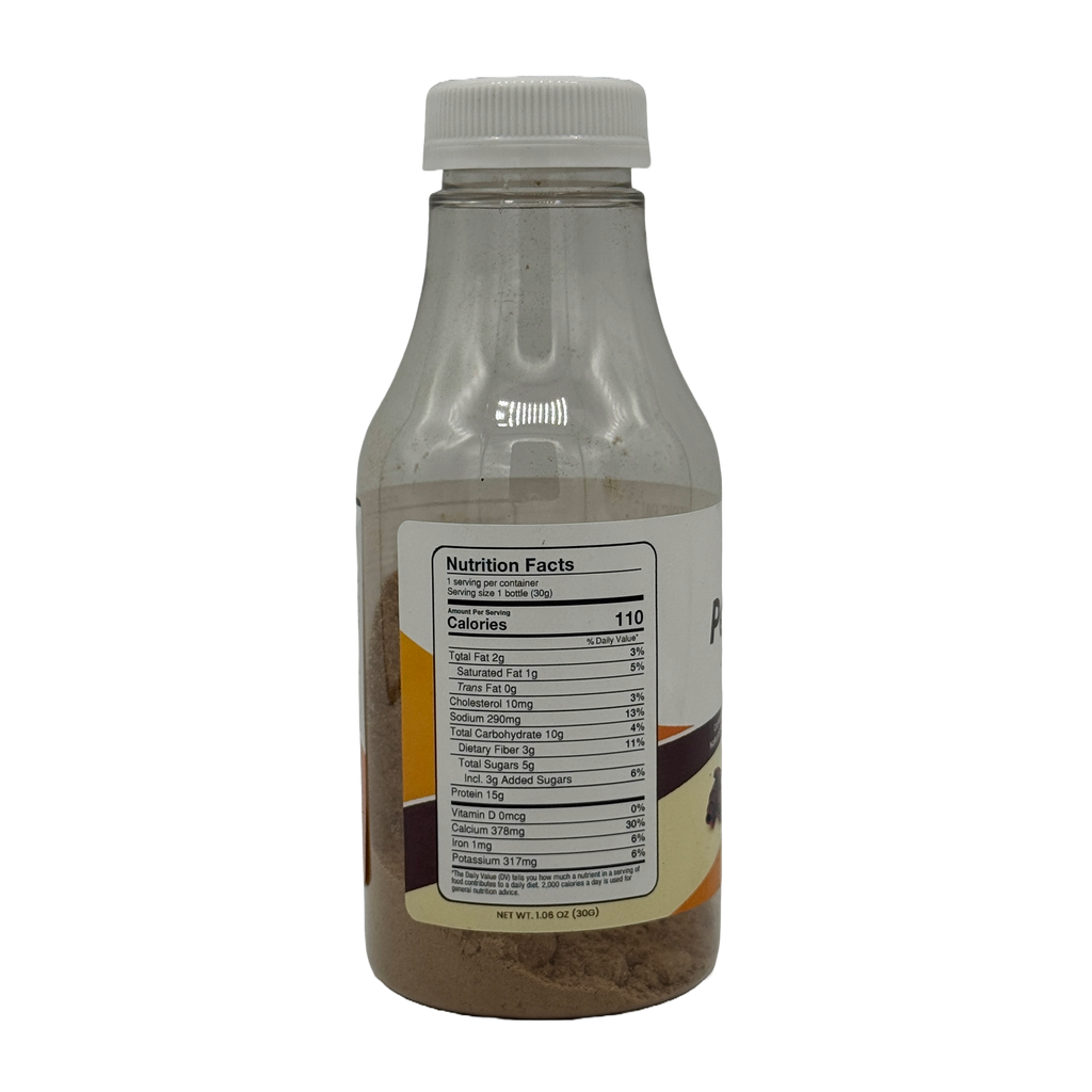 Each serving has 15 grams of protein and only 110 calories. All you have to do is add water, milk, or another favorite beverage to the bottle's fill line, then mix well and enjoy your satisfying meal or snack.