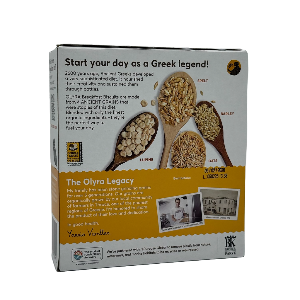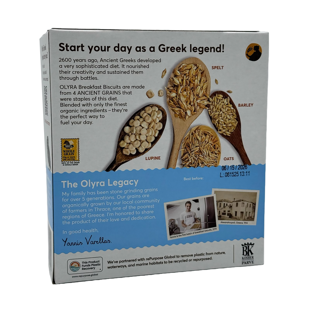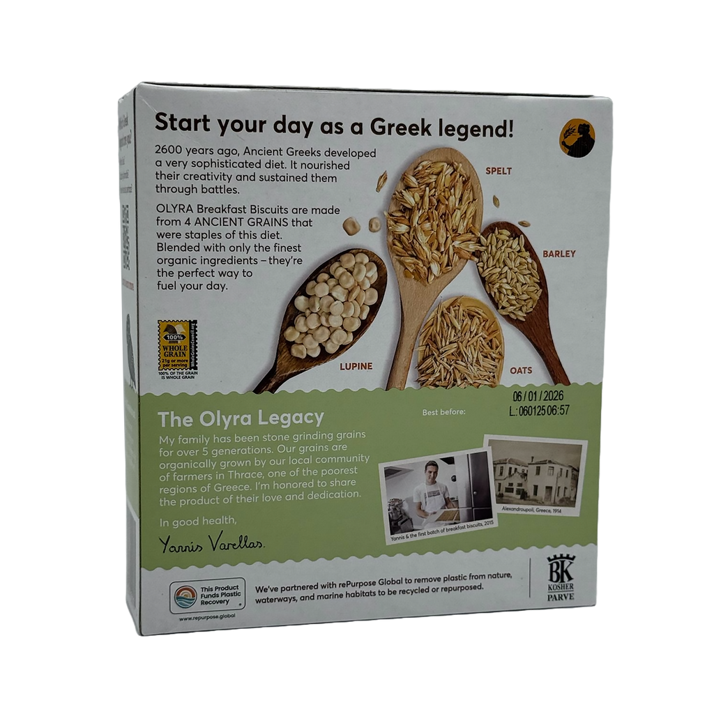 These biscuits deliver crunch and ancient-grain goodness in every bite. Made from whole-grain flours including spelt, oat, barley, and lupine, Olyra Crunchy Breakfast Biscuits offer satisfying texture and flavor without compromising on nutrition.