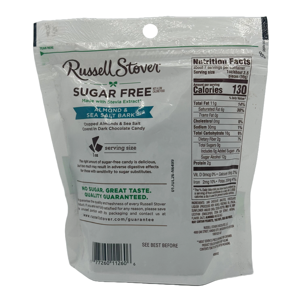 SugarMade with rich dark chocolate, chopped almonds and sea salt, Russell Stover Sugar Free Dark Chocolate Bark combines indulgence and health. Satisfy your cravings without compromising your diet with this delicious and guilt-free treat.