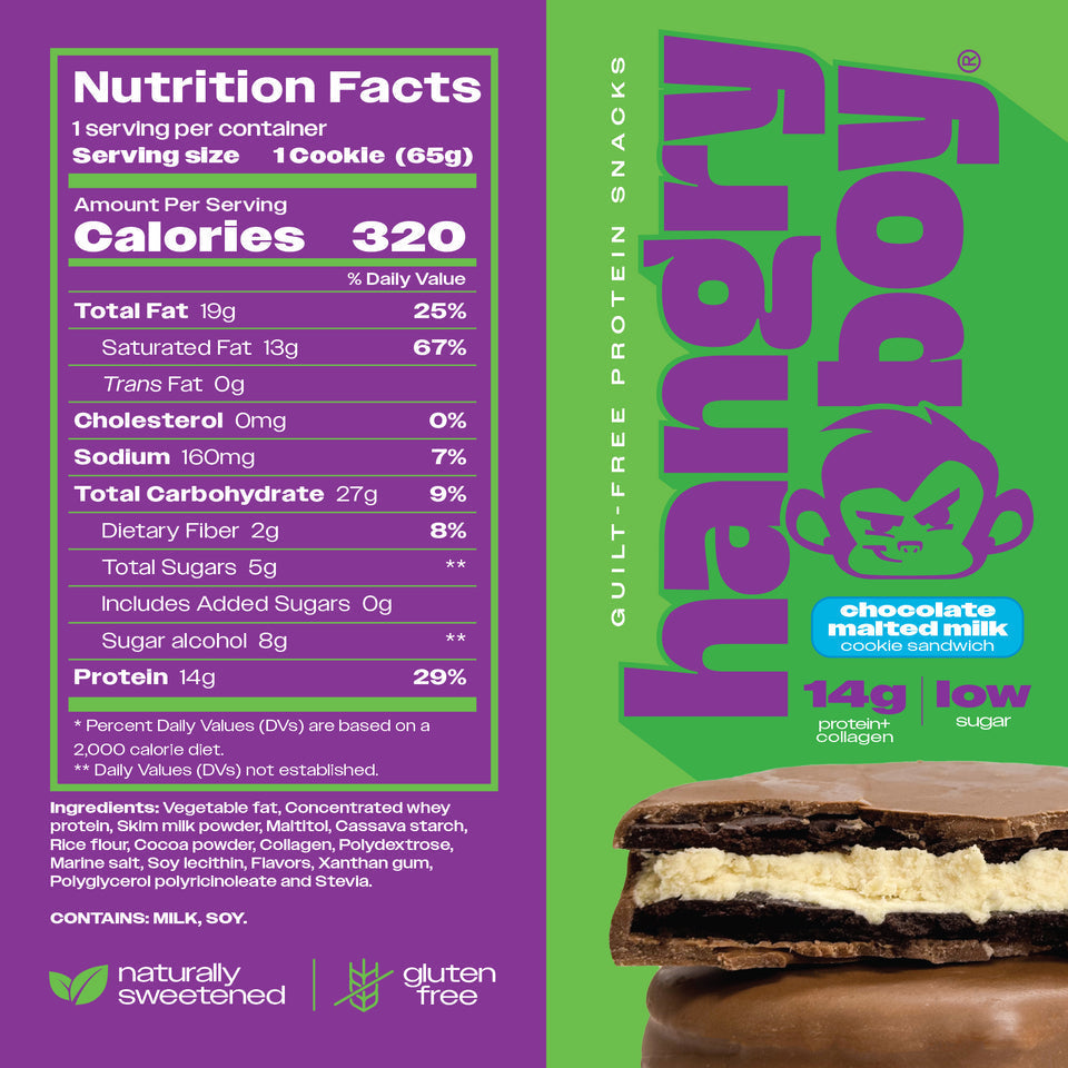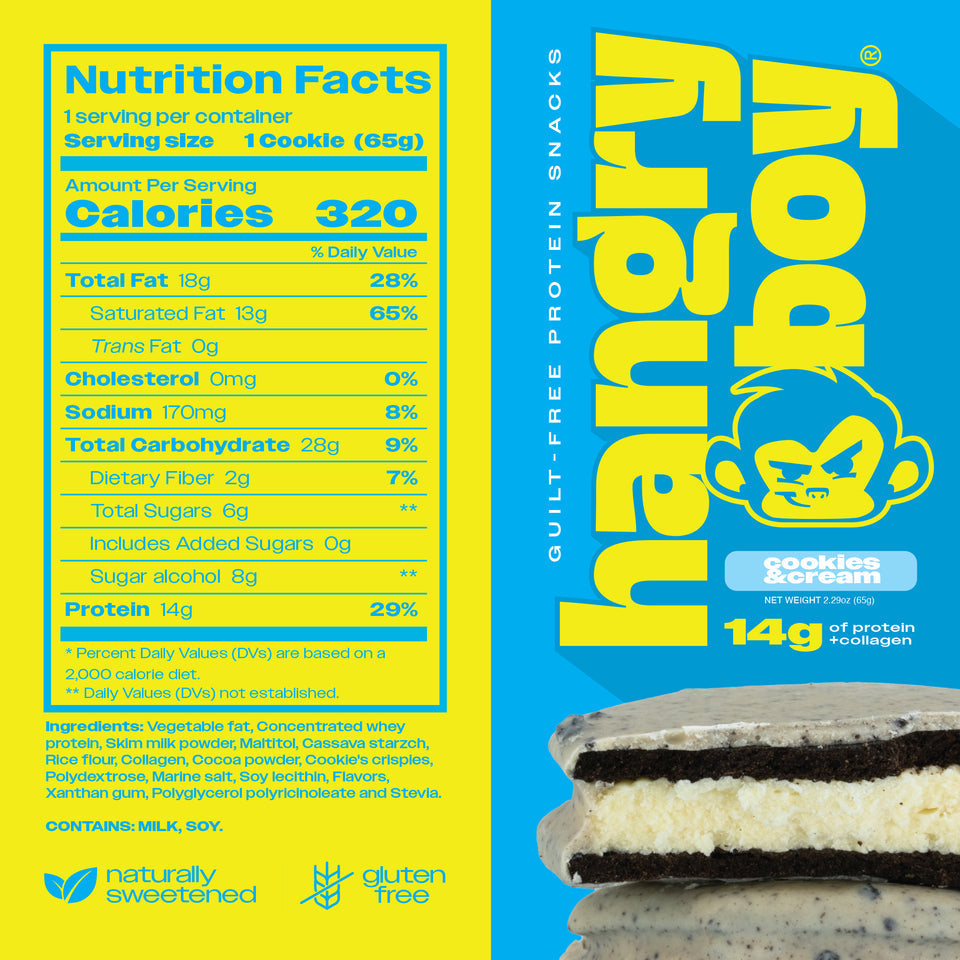Meet Hangryboy Protein Cookie Sandwich—a high-protein, low-sugar snack that actually tastes like a treat! Oven baked cookies with a creamy filling come together for the ultimate guilt-free indulgence. Whether it’s post-workout, mid-day cravings, or a late-night snack attack, Hangryboy has your back.
