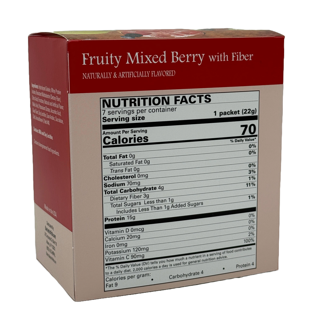 Add a refreshing twist to your protein routine with the juicy flavor of berries and zero guilt. BariatricPal Fruity Mixed Berry Protein Drink packs 15 grams of high-quality protein into just 70 calories, offering a smooth, flavorful boost without added sugar or aspartame. It's designed to support bariatric diets, weight loss plans, or anyone seeking a convenient, low-calorie, high-protein beverage.