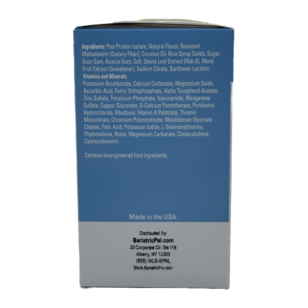 Pea Protein Isolate, Natural Flavor, Resistant Maltodextrin (Dietary Fiber), Coconut Oil, Rice Syrup Solids, Sugar, Guar Gum, Acacia Gum, Salt, Stevia Leaf Extract (Reb A), Monk Fruit Extract (Sweetener), Sodium Citrate, Sunflower Lecithin.