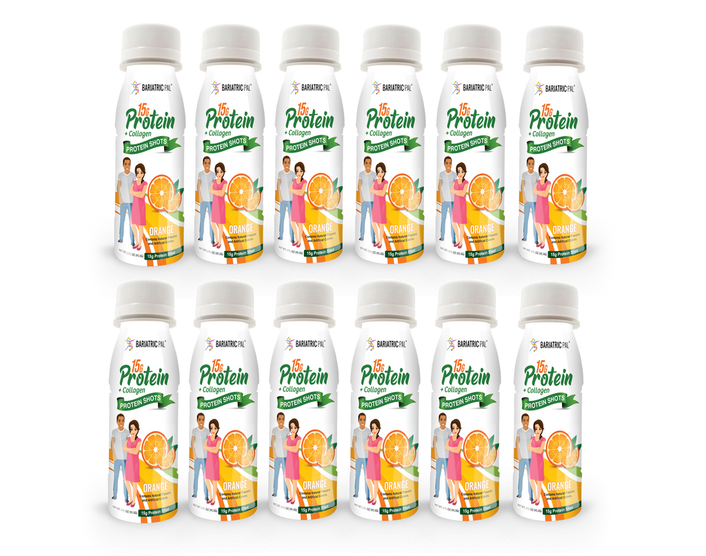 Discover the power of complete protein with BariatricPal 15g Protein & Collagen Shots in Orange flavor. This cutting-edge protein shot is expertly crafted to provide a comprehensive amino acid profile, ensuring that you receive all the essential nutrients in a convenient, easy-to-consume format. It is ideal for busy lifestyles, post-bariatric surgery nutrition, or anyone seeking a quick and effective protein boost.