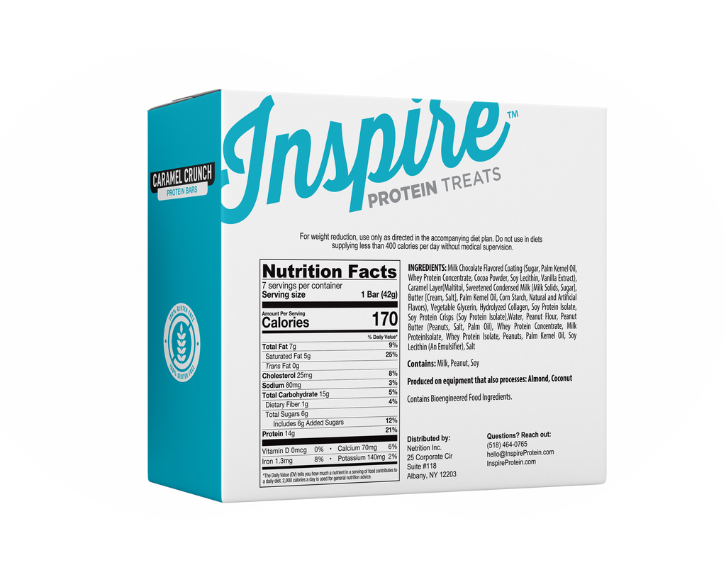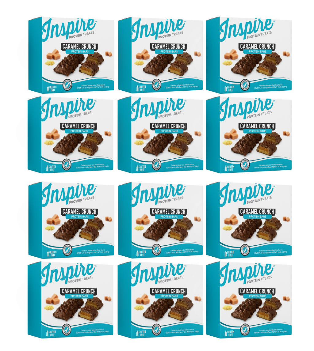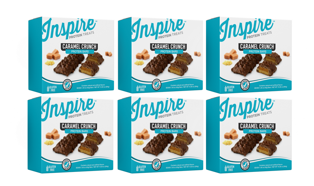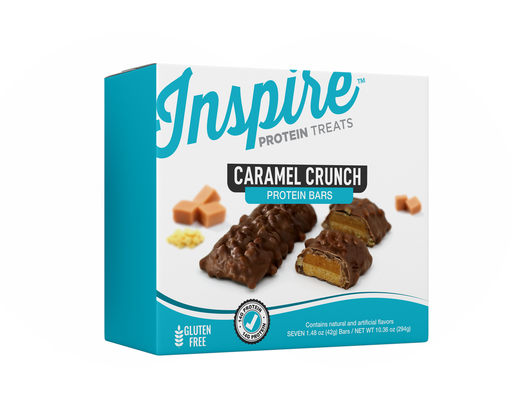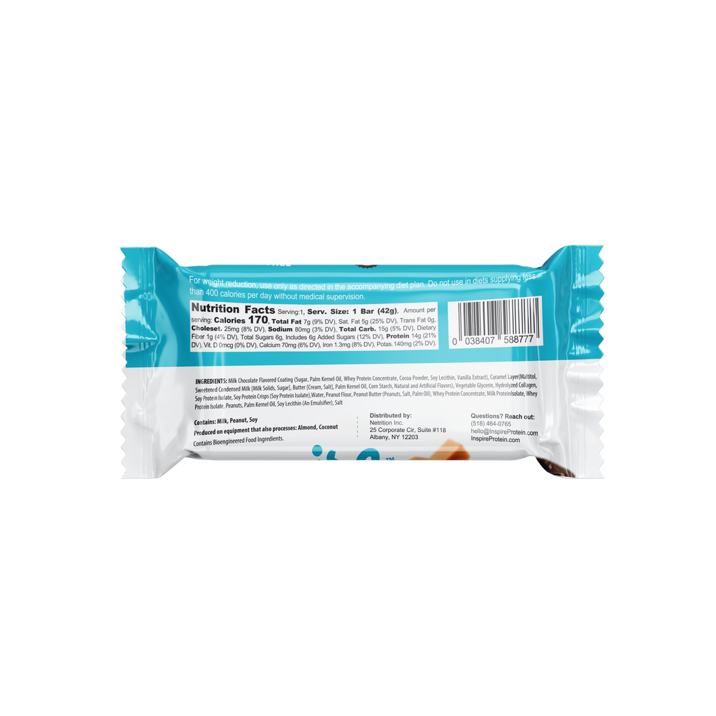 Inspire Caramel Nut Protein Bars are loaded with soft caramel, roasted peanuts, and a light crunch from protein crisps, all coated in smooth milk chocolate. It delivers the sweet and salty combo people crave, with just 170 calories and 12 grams of high-quality protein in every bar.