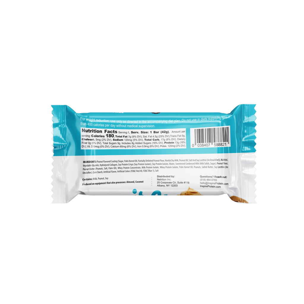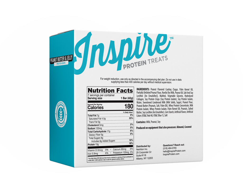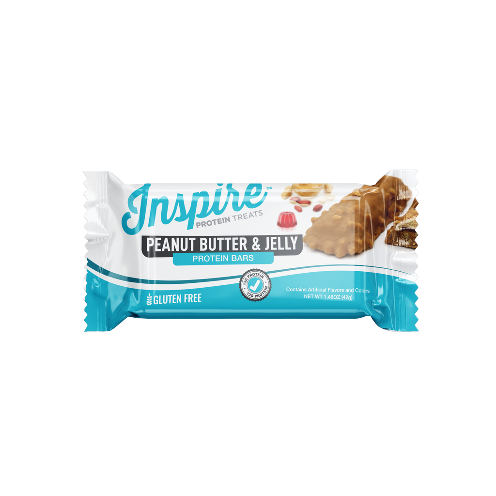 Inspire Peanut Butter and Jelly Protein Bars deliver 13 grams of high-quality protein and only 180 calories. Sweet, satisfying, and ready whenever you need it.