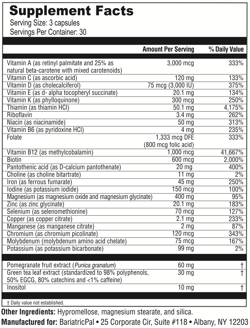 BariatricPal Ultra Multi Bariatric Multivitamin Capsules are a brand-new, high-potency multivitamin created specifically for bariatric patients who have undergone malabsorptive weight-loss surgeries, including: