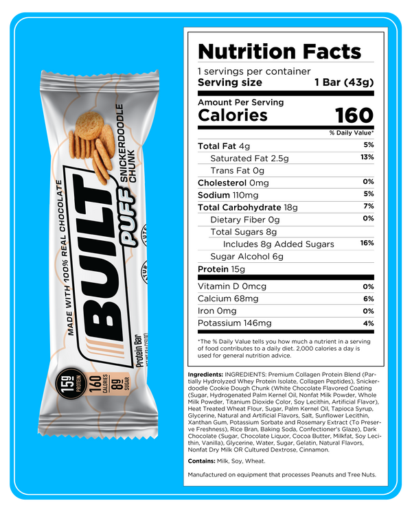 Built Bar Protein Puffs combine the satisfying crunch of a classic snack with the powerful nutrition of a protein-packed treat. Indulge in a better-for-you snack that keeps you on track without sacrificing flavor or fun.