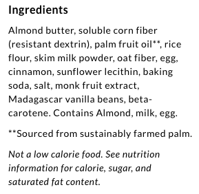 Dunkies are made with prebiotic fiber and almond butter then sweeten it all with monk fruit instead of sugar to create a wheat free cookie that's filling from the first bite and makes snaccidents a thing of the past.