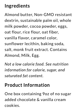 - 3g net carbs per 2 cookies