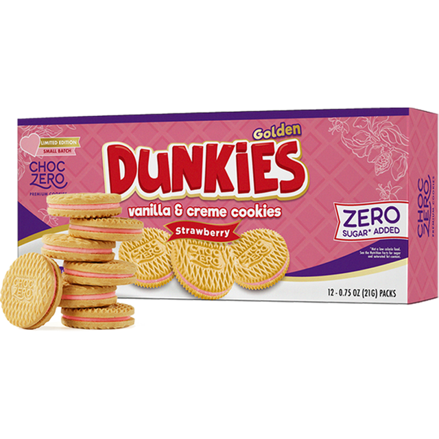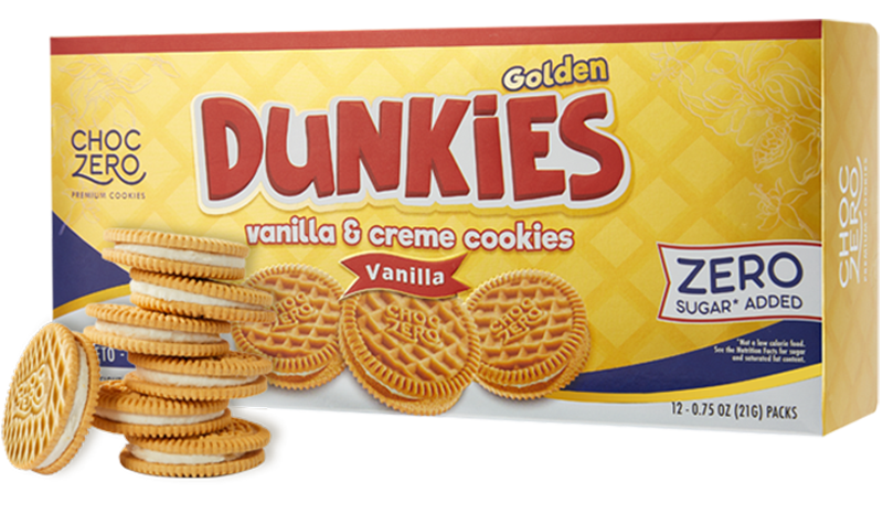 SugarChocZero Dunkies sandwich cream cookies are low in net carbs and completely gluten-free! Made with no sugar added, our low carb cookies are ready for you to enjoy without the sugar rush.