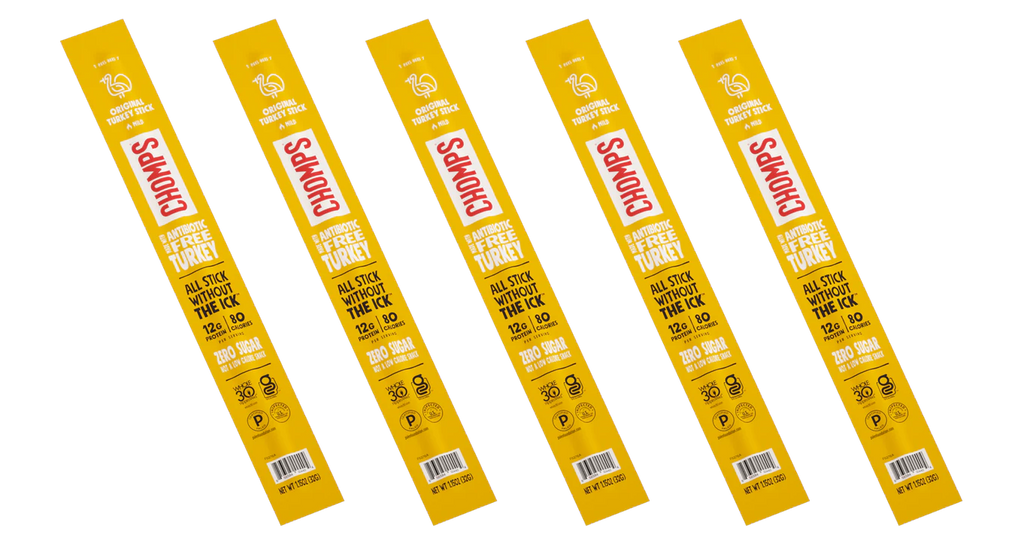 SugarThis Original Turkey Flavor Chomps Snack Sticks feature the same savory taste that first made us popular: slightly smoky, slightly spicy. The taste is sure to make every snack time a mouthwatering experience.