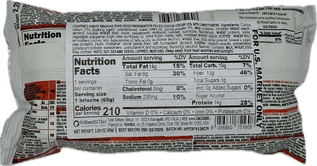 Ciao Carb Protobrio Croissants are a high protein, low carb croissant with fiber. Ciao Carb Italian croissants are perfect for those following a low carb lifestyle.