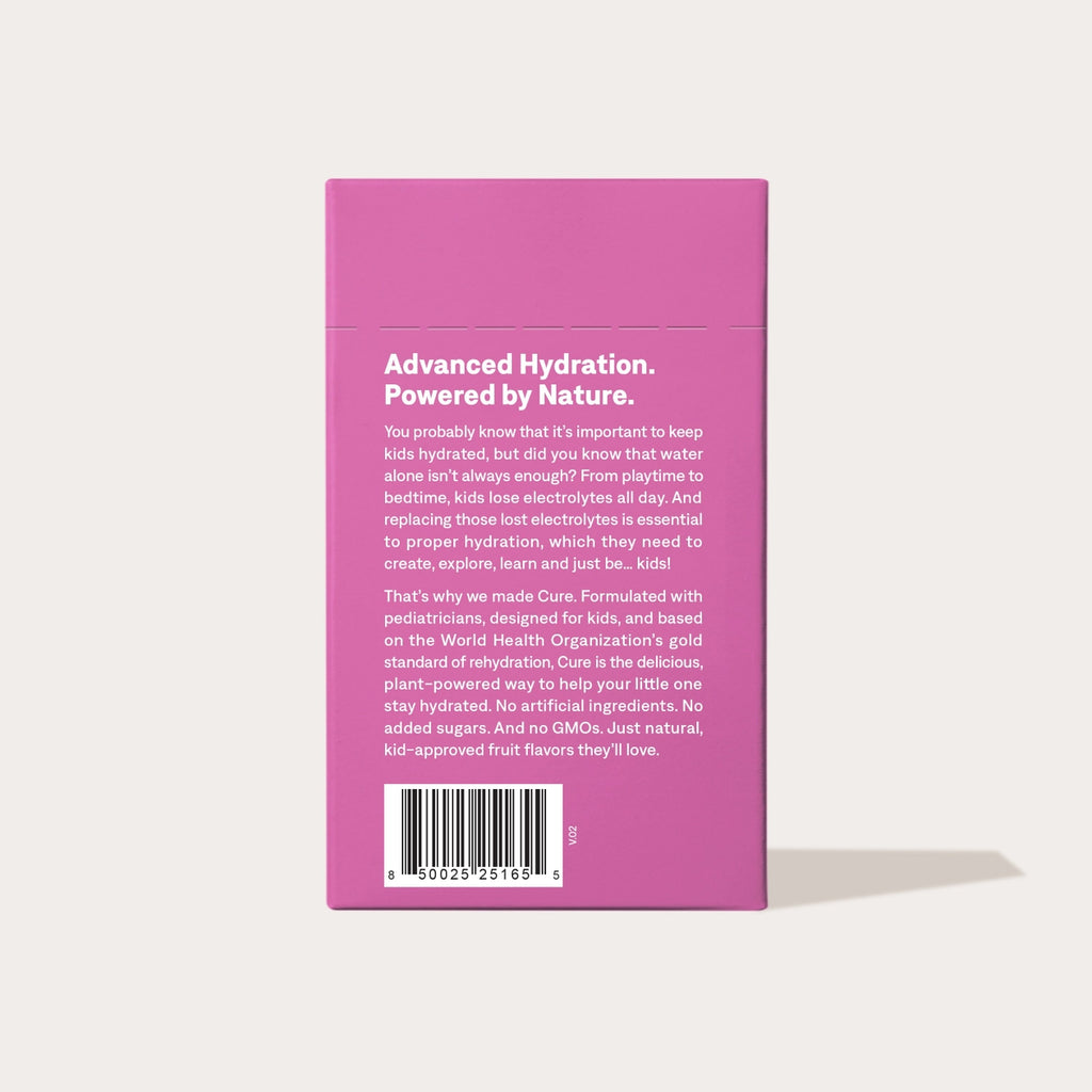 Keep your little ones hydrated the clean way with Cure Kids Hydration Electrolyte Drink Mix—a pediatrician-formulated, sugar-free solution designed just for kids. Backed by science and based on the World Health Organization’s ORS (Oral Rehydration Solution) ratio, this mix delivers essential electrolytes in kid-friendly flavors, without added sugar or artificial ingredients.
