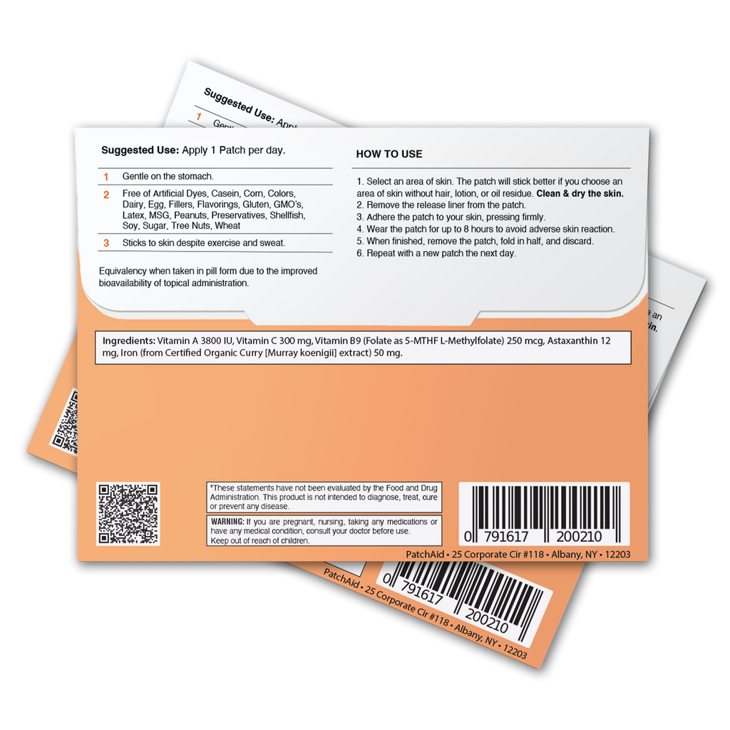 The Food and Drug Administration has not evaluated these statements. The Gastric Sleeve Active Lifestyle Vitamin Patch Pack by PatchAid is not intended to diagnose, treat, cure or prevent any disease. Anyone with a medical condition should seek the advice of a licensed medical practitioner. Individual results may vary.