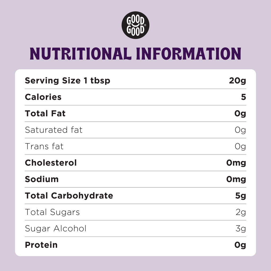 Good Good Keto Friendly Sweet Jams are a low calorie, low carb, sugar free jam that's sweetened with erythritol and stevia. Made with only natural occurring sugars from the fruit, Good Good Keto Friendly Sweet Jams are ideal for those following a low carb, keto lifestyle.