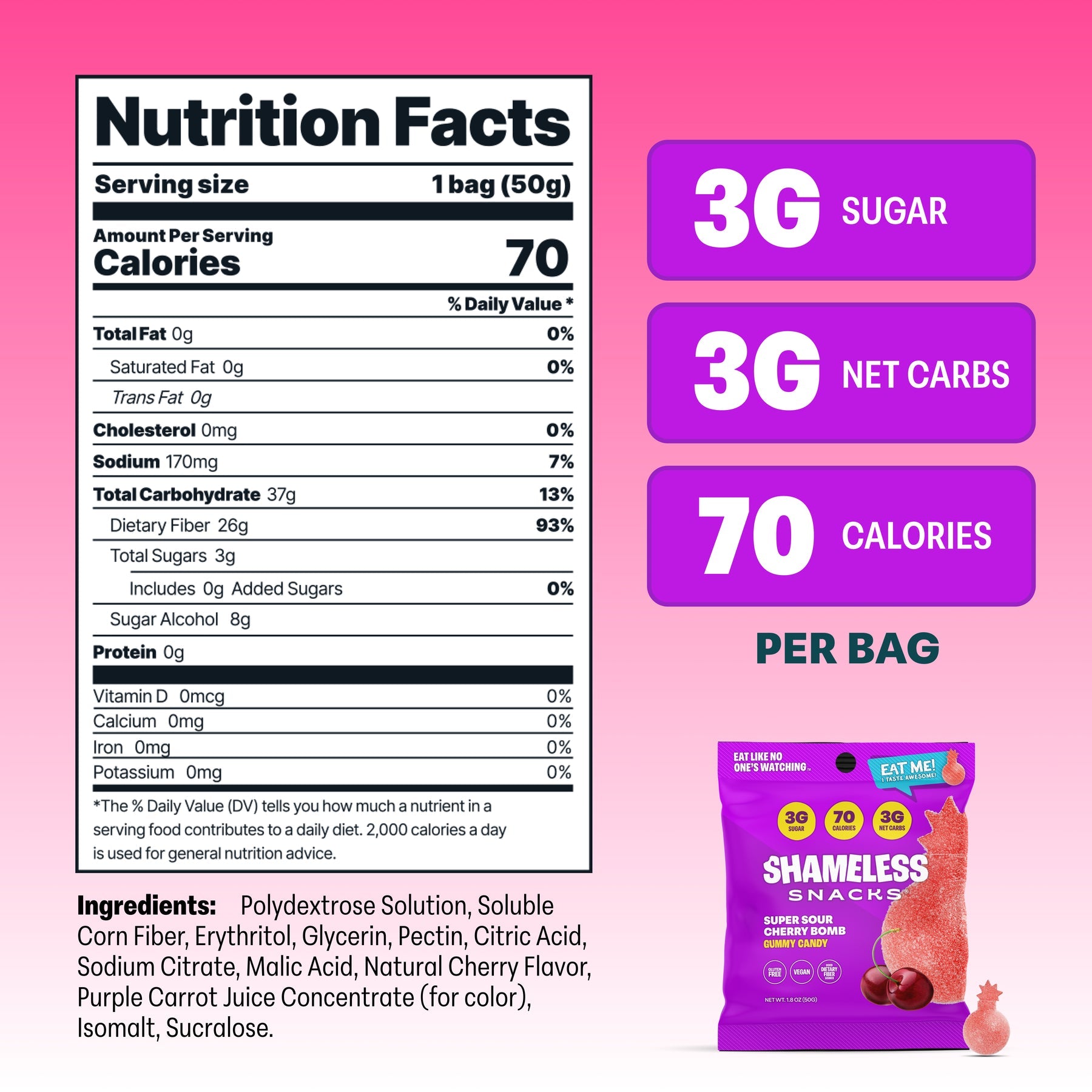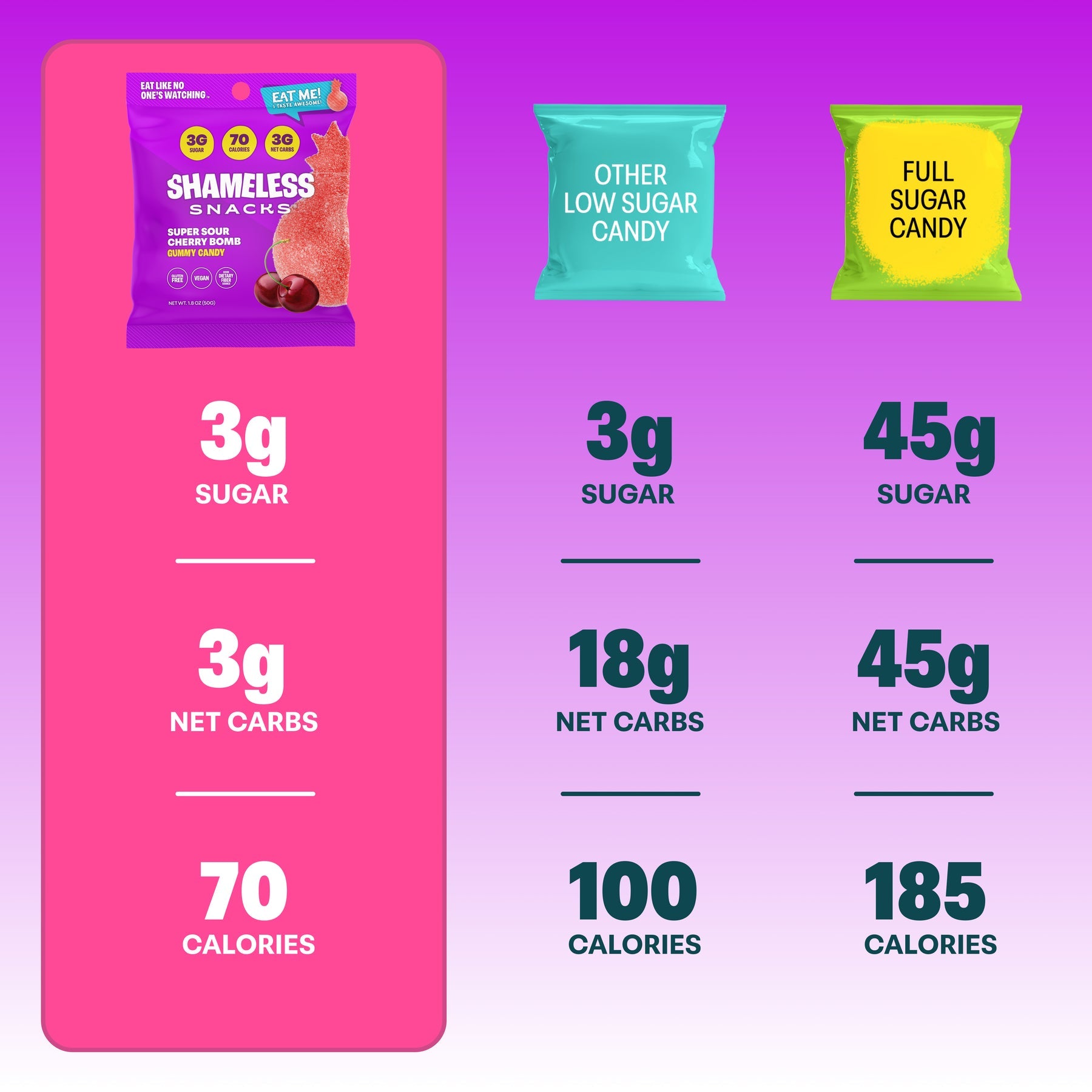 Inspired by the classics but with way less sugar, carbs, and calories — Super Sour Cherry Bomb are a guilt-free sour candy indulgence.