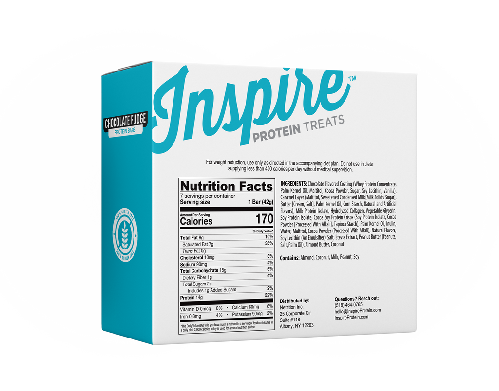 Inspire Chocolate Fudge Protein Bars are rich, dense, and packed with deep cocoa flavor that tastes like the real thing. Each bar delivers 14 grams of high-quality protein and only 170 calories, so you get a chocolate fix that fuels you.
