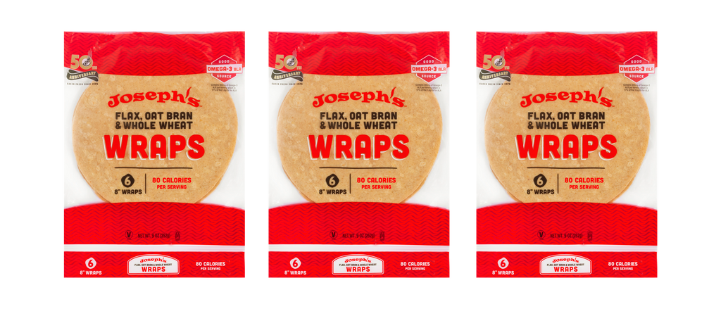 Joseph's Bakery Flax, Oat Bran & Whole Wheat Wraps have lower carbs than traditional wraps, and are a good source of protein and Omega-3 ALA. These low carb wraps are a great alternative for sandwiches, quesadillas, and tacos.