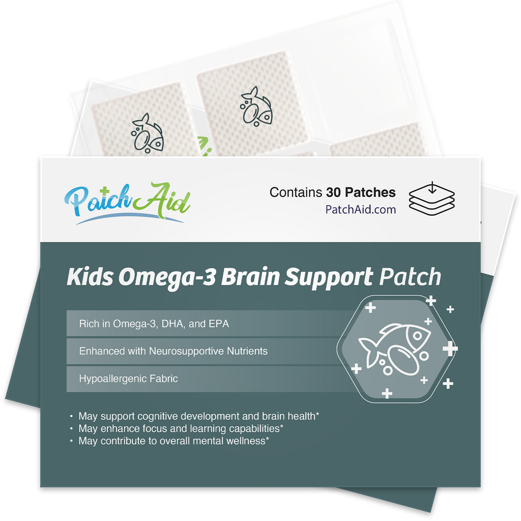Help your child’s mind thrive with the Kids Omega-3 Brain Support Patch by PatchAid! Packed with a rich blend of Omega-3 fatty acids, DHA, and EPA, this patch is specially designed to support cognitive development, enhance focus, and promote overall mental wellness. Combined with neurosupportive nutrients and gentle on sensitive skin, this hypoallergenic patch is an easy, convenient way to help fuel your child’s brain health daily.
