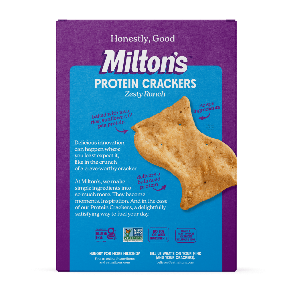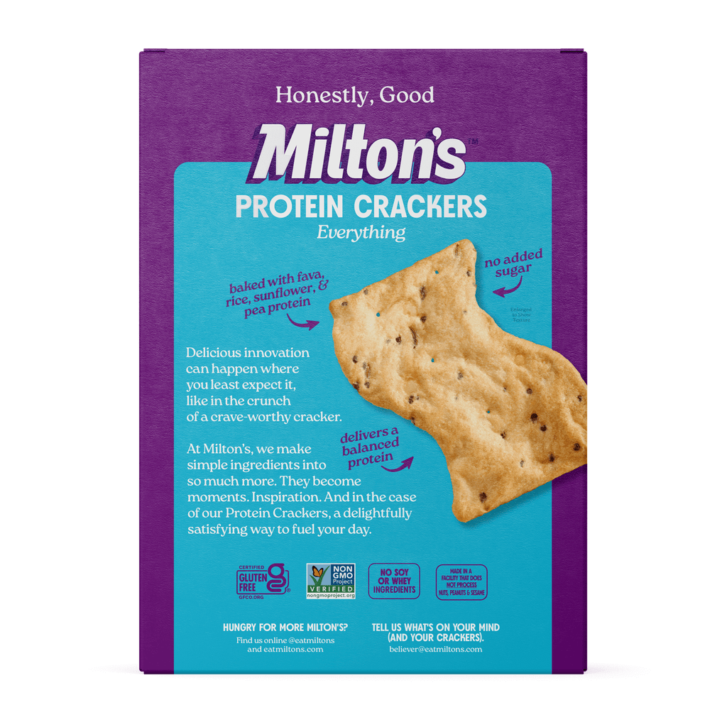 Can you believe that a cracker can be as irresistible as a chip? Or that its satisfying crunch can come with 10 grams of plant-based protein? It’s true. Milton’s Protein Crackers prove that anything is possible with the right ingredients, and that something as simple as a cracker can be a delightfully better-for-you way to fuel your day.