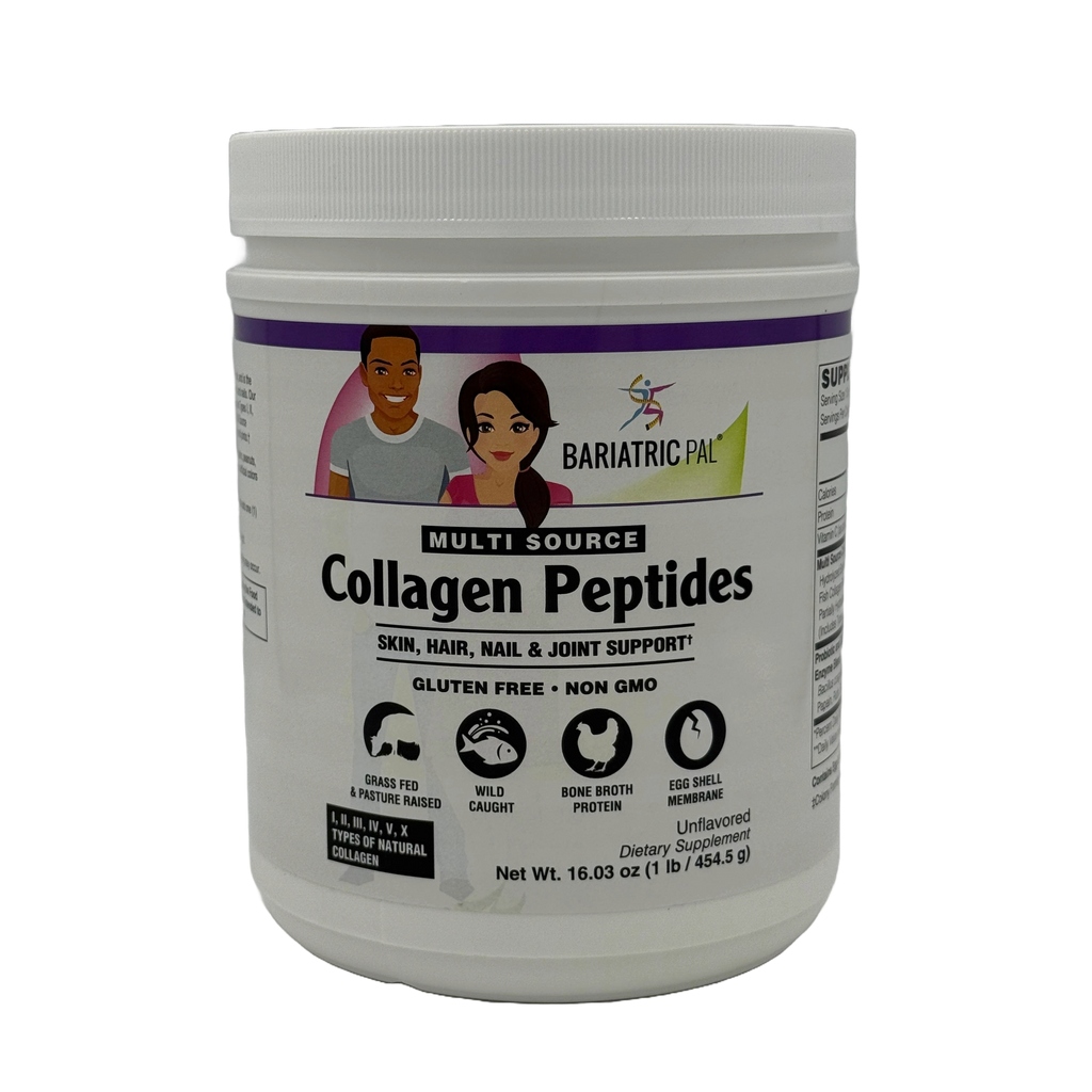 Embark on a transformative journey to wellness with BariatricPal's Multi-Source Collagen Peptides, expertly crafted to address the natural decline of collagen. Our specialty blend delivers comprehensive support for your skin, hair, nails, and joints, meeting the dynamic needs of your body, especially beneficial after weight loss surgery.