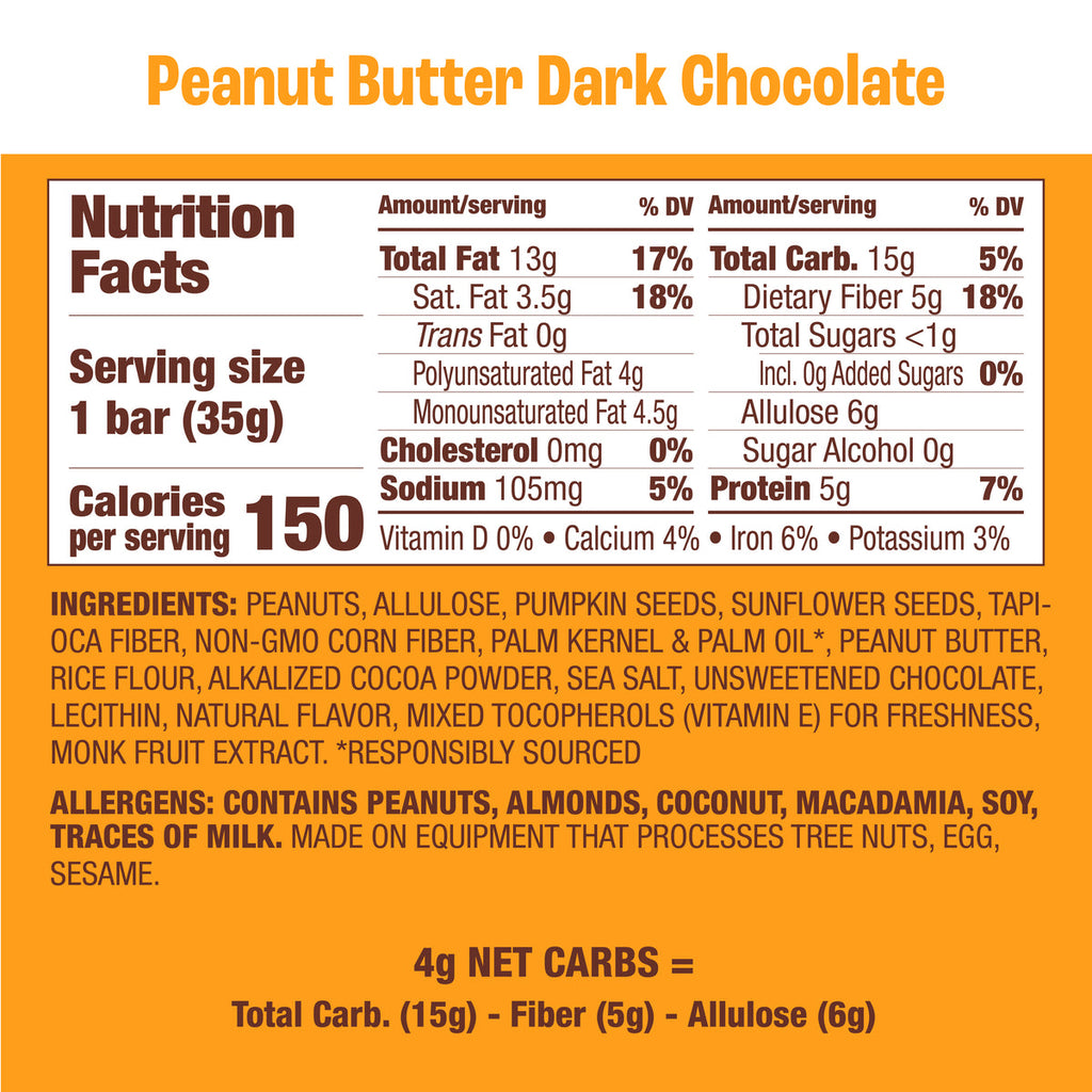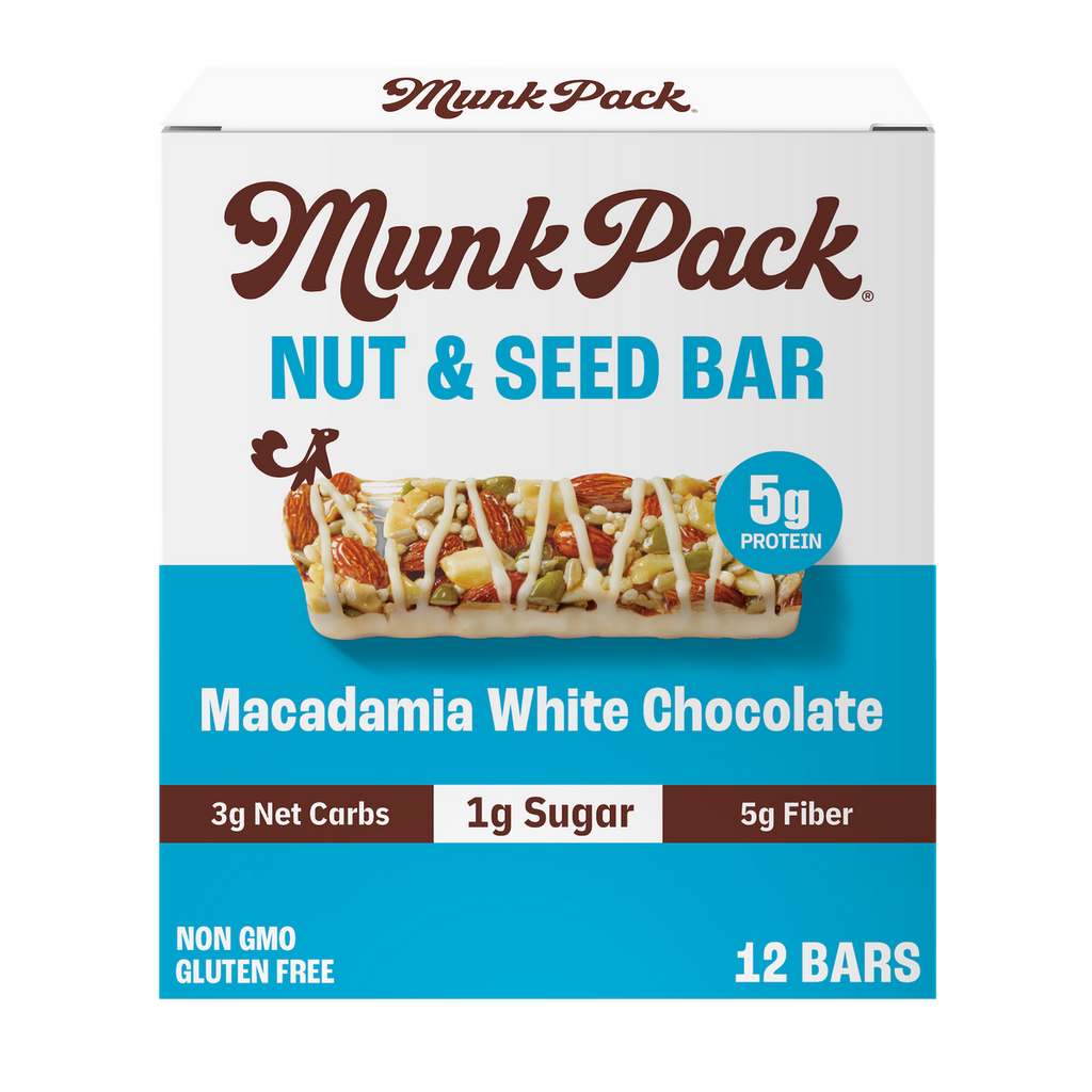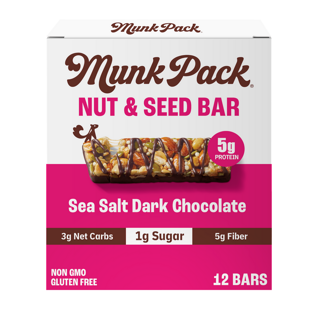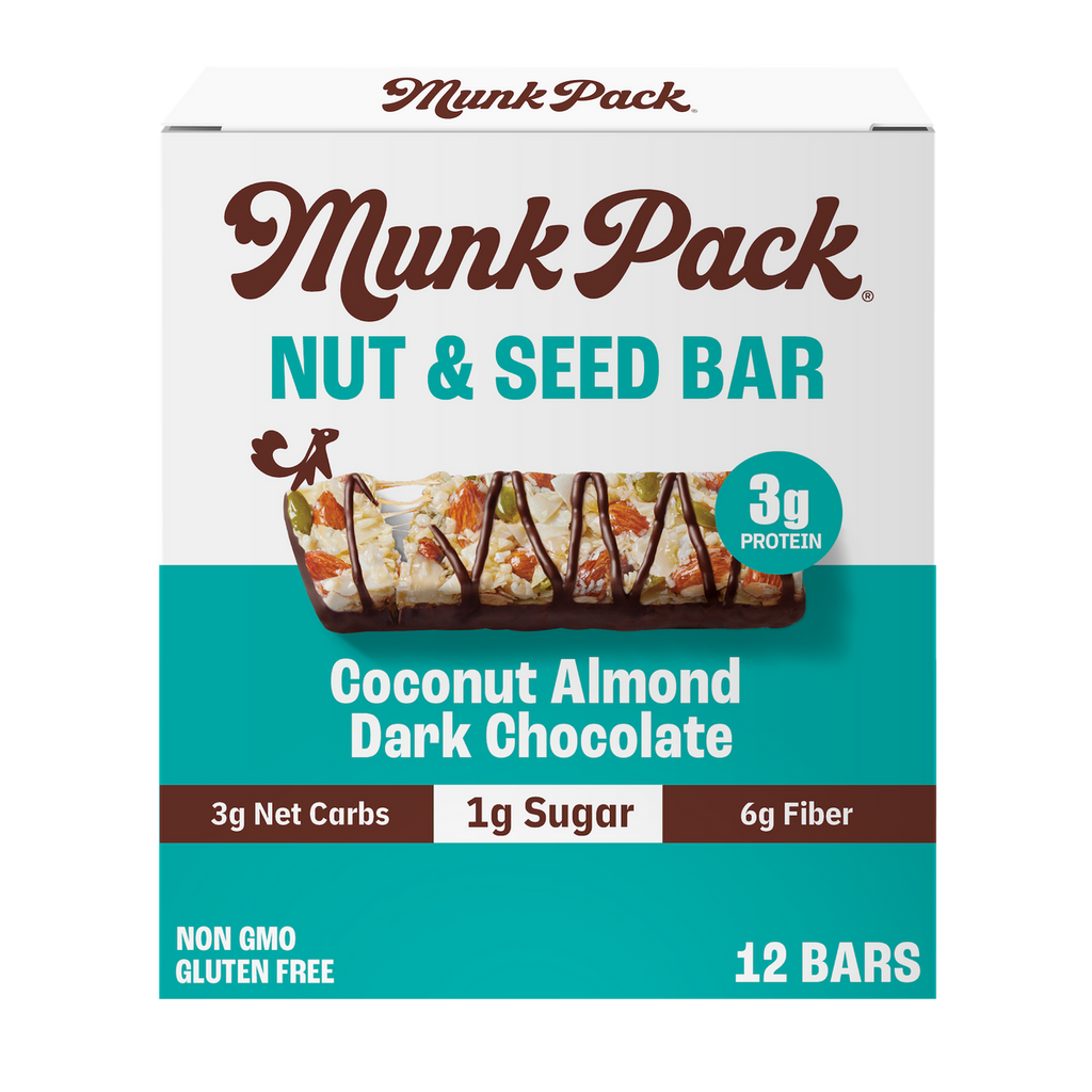 Munk Pack Keto Nut and Seed Bars make it easy to meet your macros on the go, so you can satisfy your hunger and stay on track throughout your busy day. With less than 1g of sugar, Munk Pack Keto Nut and Seed Bars combine a bit of sweet and salty in a low carb snack bar. Sweetened with Allulose and monk fruit, Munk Pack Keto Nut and Seed Bars contain no sugar alcohols, no added sugar, and no dairy, soy, artificial preservatives or artificial flavors.