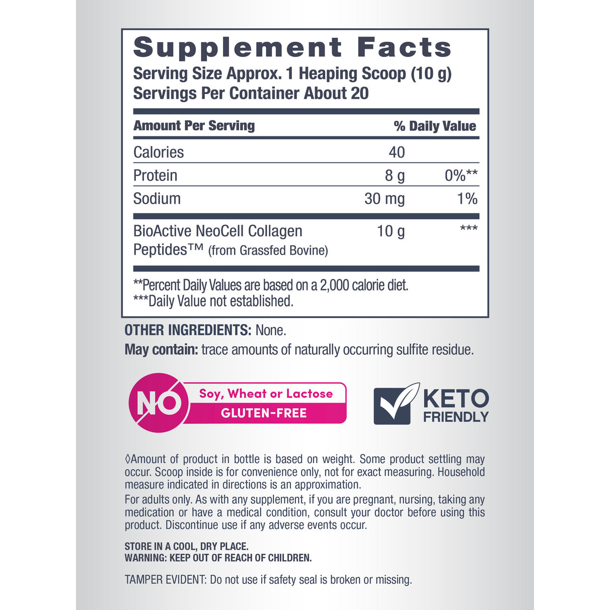NeoCell Super Collagen + C uses BioActive NeoCell Collagen Type 1 & 3. Collagen Type 1 & 3 is 90% of the body's Collagen and is the main Collagen constituents in the skin, hair, nails, ligaments, tendons, bones and muscles. Super Collagen products provide a pure and potent dose of clinically tested, enzymatically hydrolyzed collagen.*