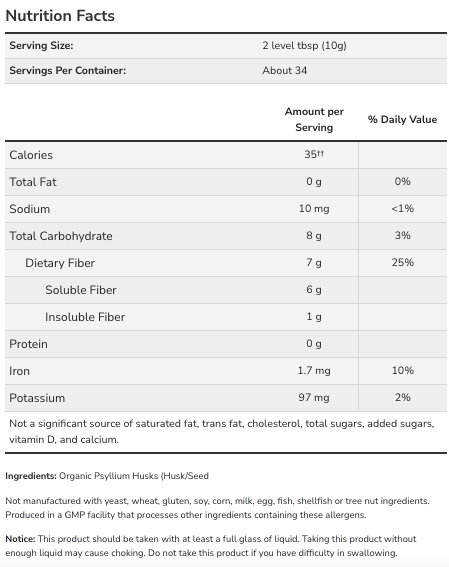 Now Psyllium Husk Powder is pleasant tasting and mixes easily with your favorite liquids. Known for their uncanny ability to bulk over 100 times their original density, Psyllium Husk Powder offers an excellent source of natural fiber, essential to the promotion of digestive regularity.* A serving of NOW Psyllium Husk Powder supplies 6 grams of the 7 grams soluble fiber recommended per day.