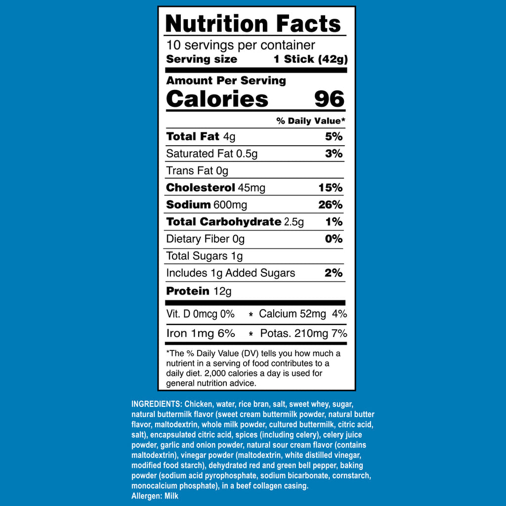 Ostrim Chicken Snack Stick is a low fat, high protein meat snack stick made from Chicken. Ostrim Chicken Snack Stick is all natural, no nitrates, low carb and gluten free.