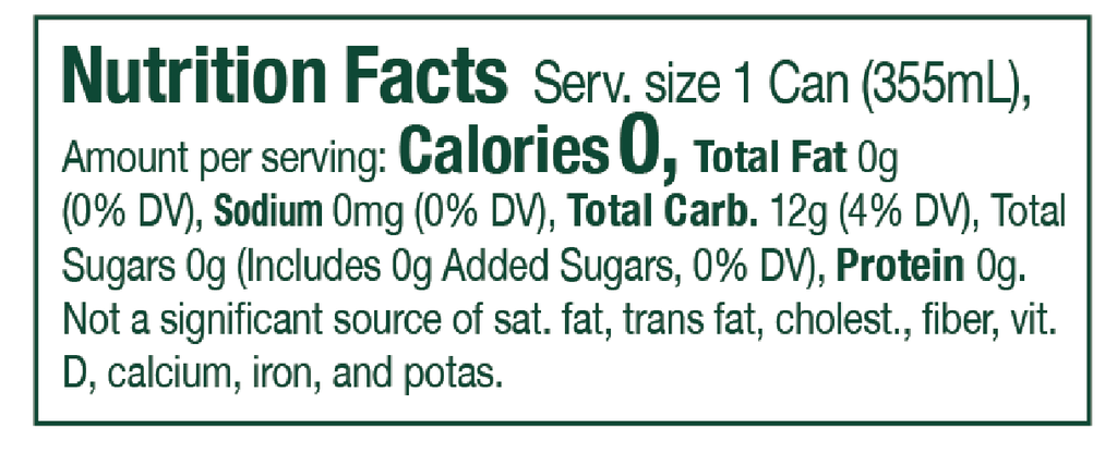 - 0 Calories, 0 Sugar, 0 Carbs