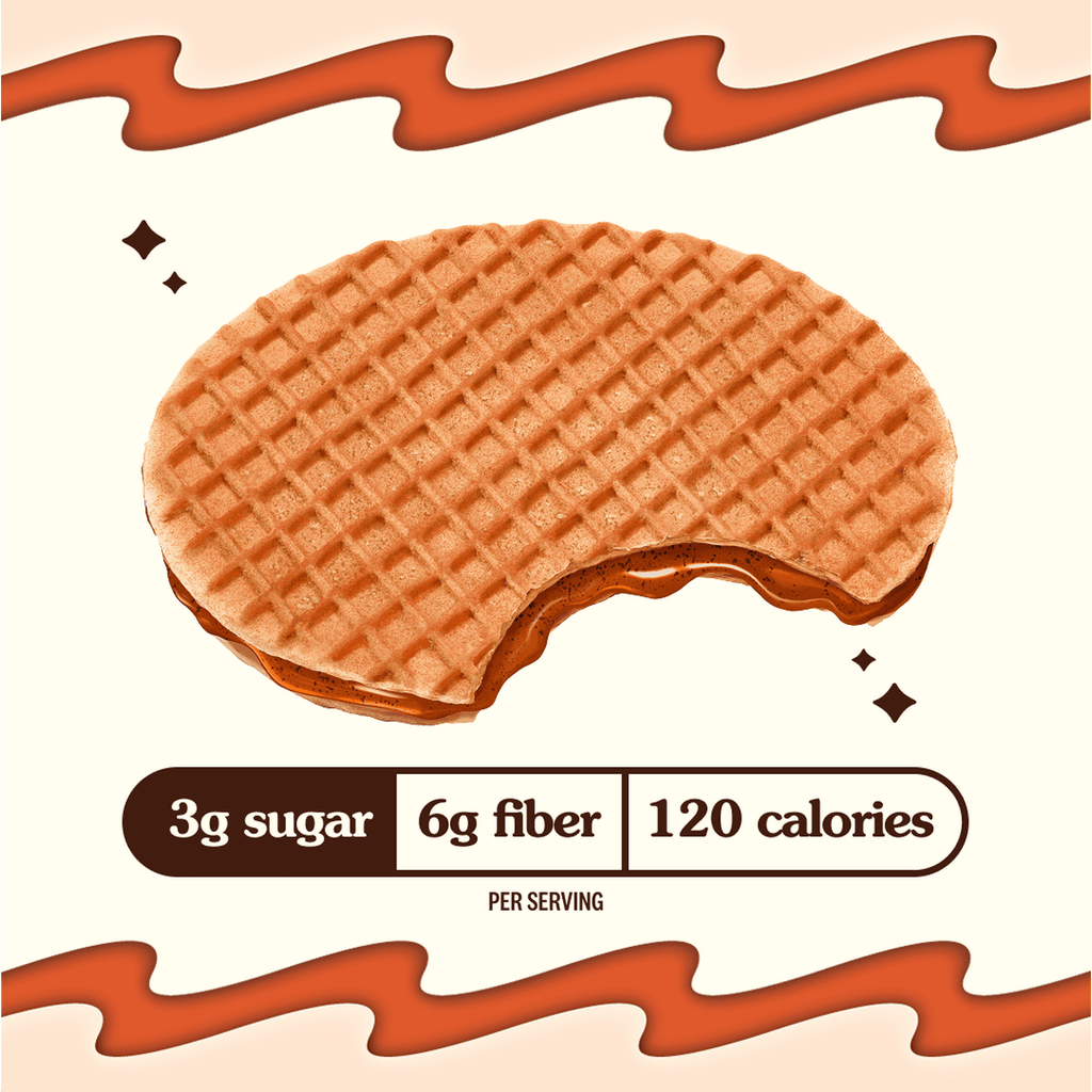 SugarA wintertime favorite! 3 grams of sugar, a hint of spice, and everything nice. The inspiration behind Rip Van Wafel was to bring Americans a unique, guiltless and indulgent snack. The third iteration of the reinvented dutch stroopwafel has just 3 grams of sugar. That's 88% less than America's most popular candy bar with 58% less net carbs and 6X the fiber. Now go and indulge without the guilt!