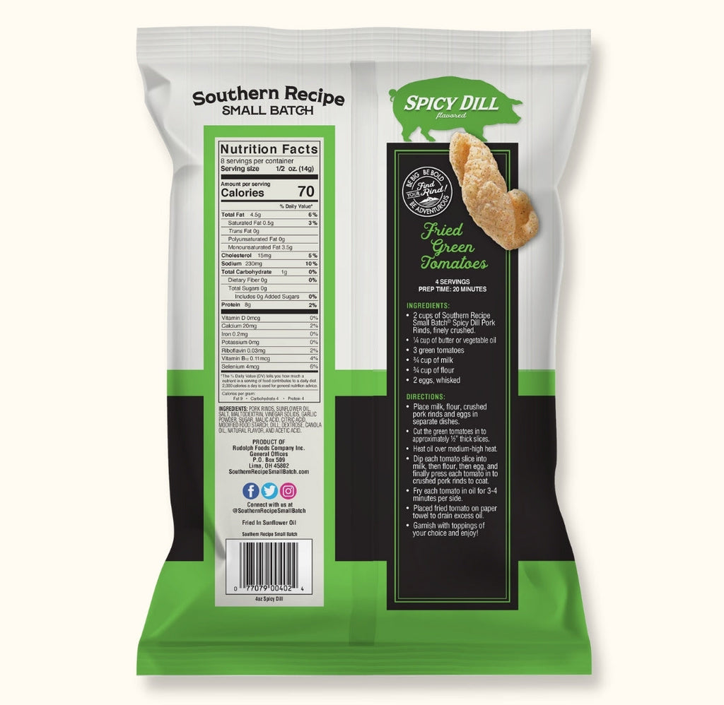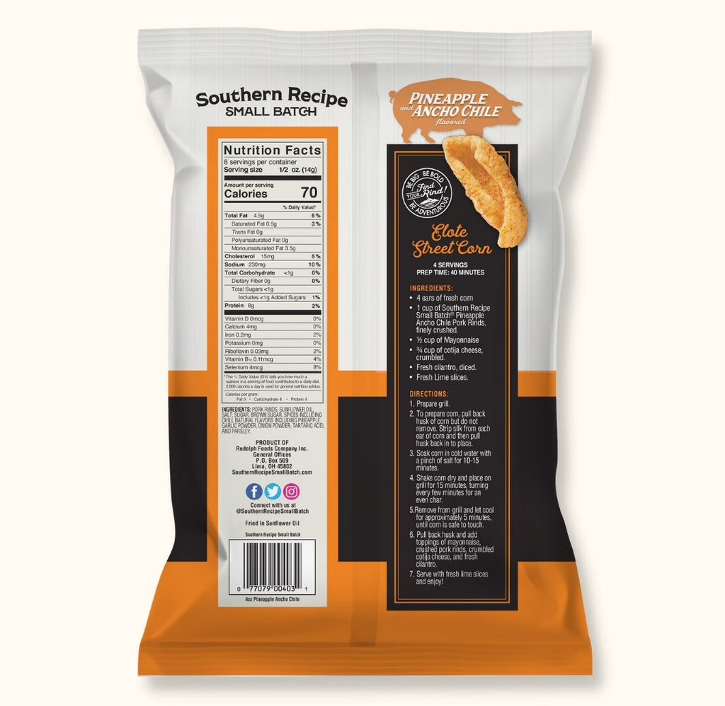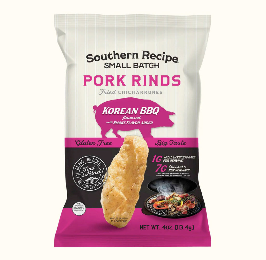 Southern Recipe Small Batch Pork Rinds take bold flavors and pork rinds to a new level. Southern Recipe makes their pork rinds in small batches to bring big taste to this low carb snack. Eat Southern Recipe Small Batch Pork Rinds right out of the bag or use them as a scoop with your favorite dips.