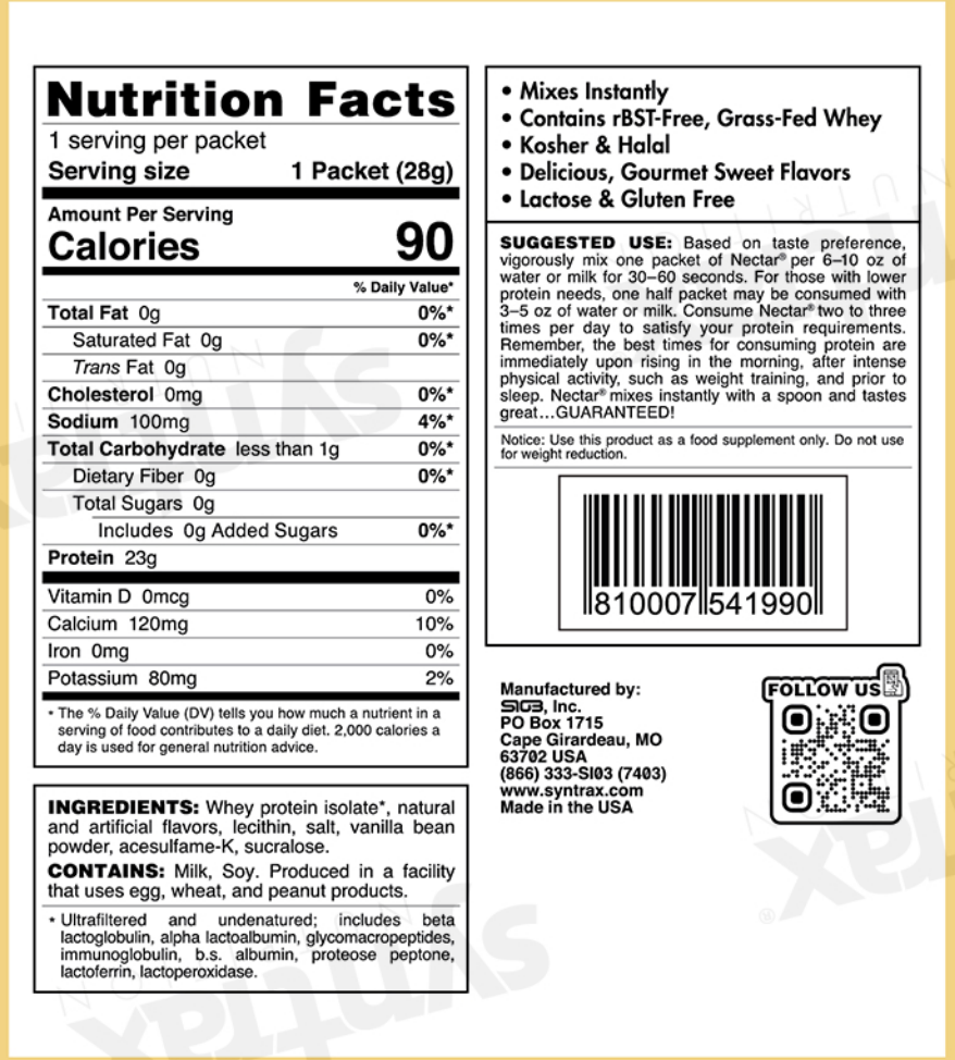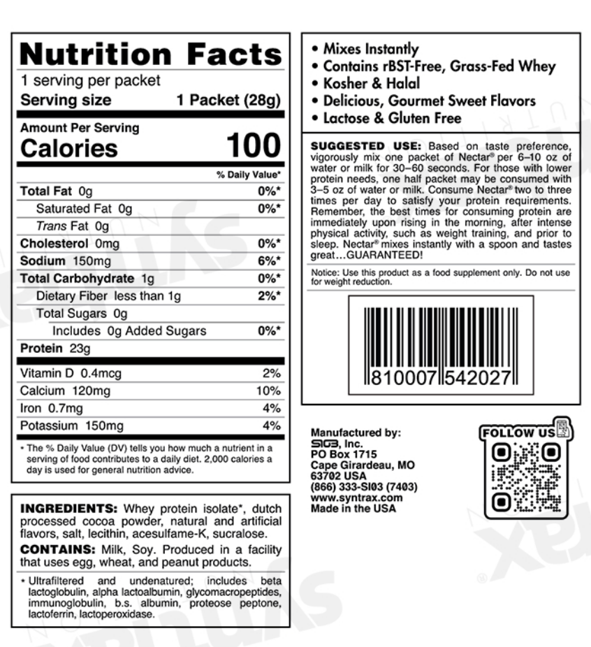 We carry 16 flavors of Syntrax Nectar Protein single scoop trial packets: