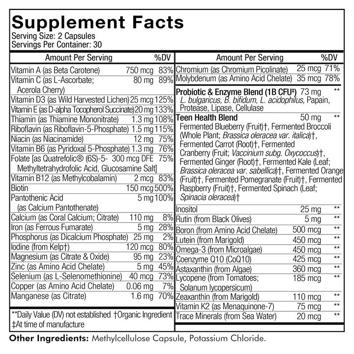 - All-in-one vitamins for teens, including vitamins A, B, C, D, E, and K