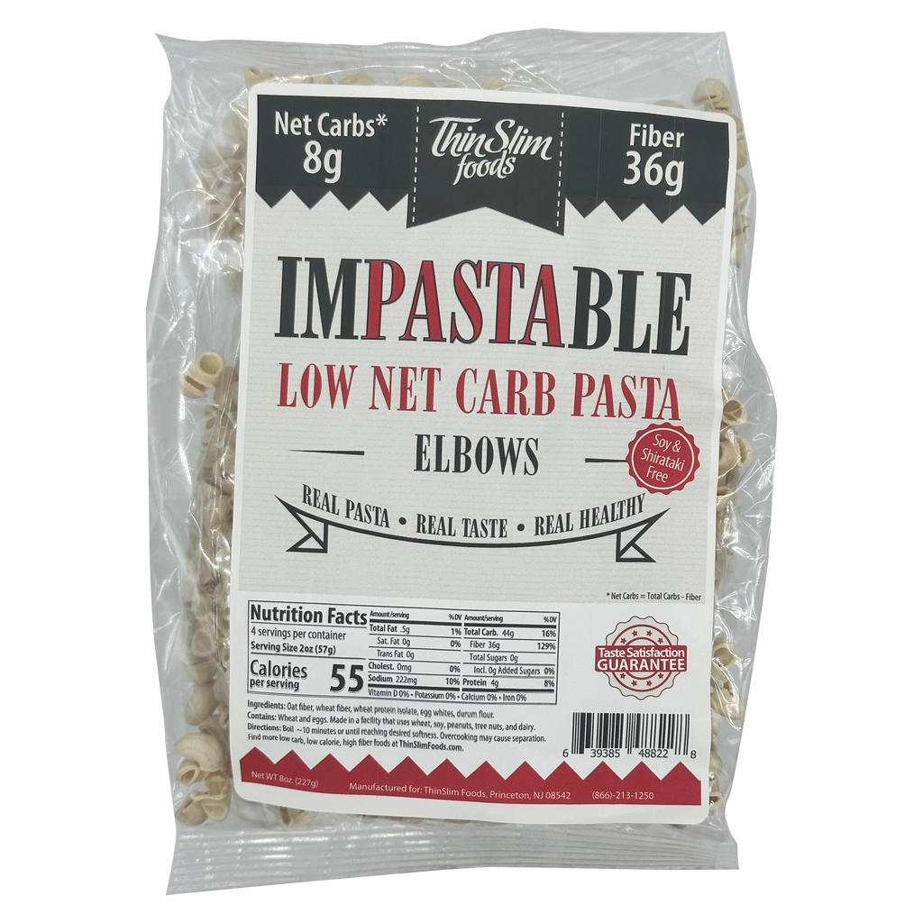 SugarThinSlim Foods Impastable Low Carb Pasta is a wholesome pasta you can enjoy with far less carbs than regular pasta. ThinSlim Impastable Pasta is made with oat fiber to keep you full and satisfied!