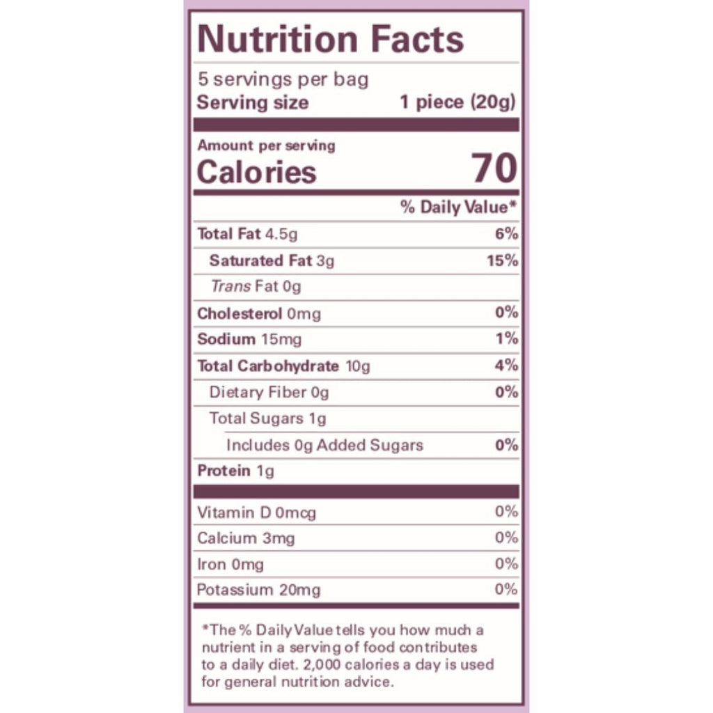 Peanut Butter Cup Ingredients: Non-GMO isomalto-oligosaccharide (vegetable source), organic cocoa butter, coconut oil, peanut flour, oat milk powder (water, oats, coconut oil, enzymes), organic cocoa liquor, salt, organic sunflower extract, monk fruit extract.