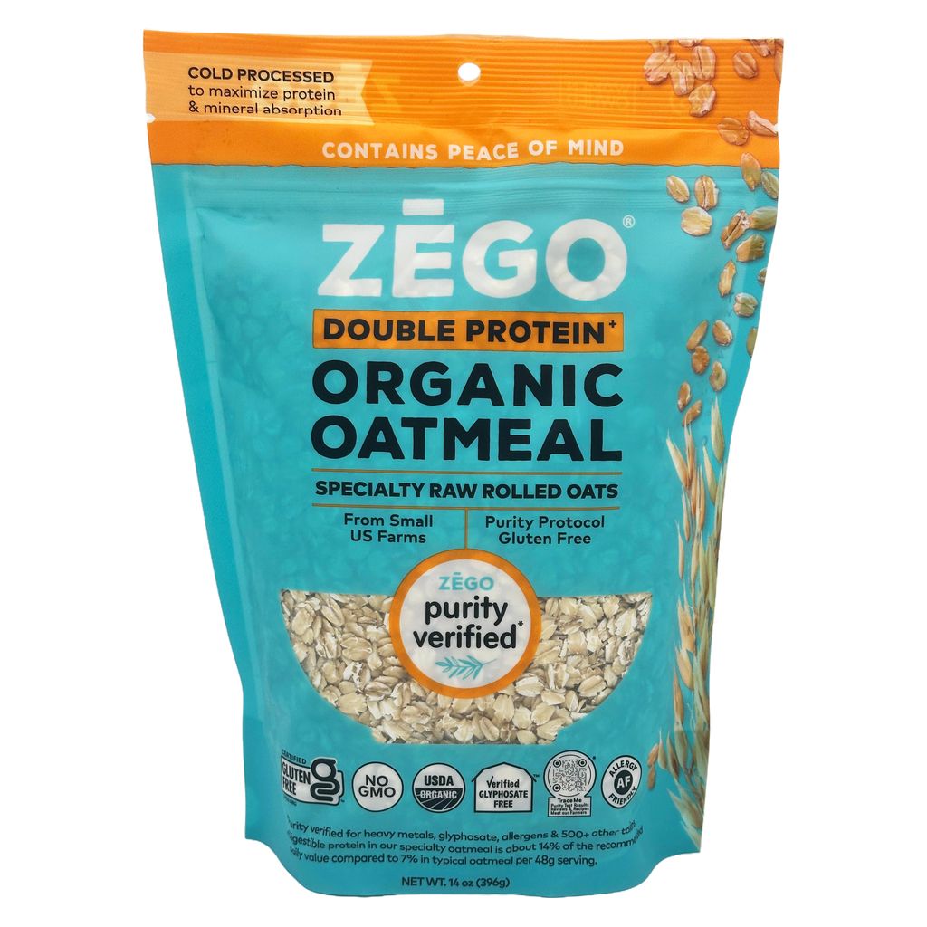 Zego Organic Double Protein Oats 14 oz. Bag Highlights: